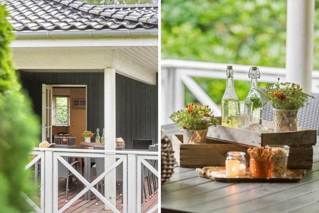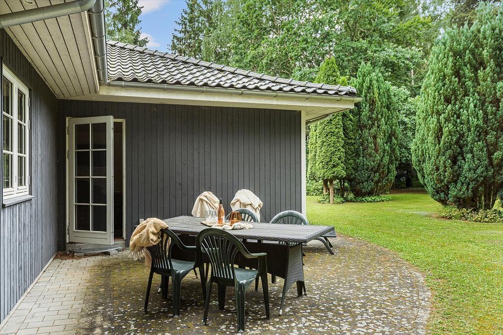 Du kan sidde på den overdækkede terrasse og nyde morgenmaden, mens du kigger ud i den store have. Den naturskønne udsigt og det rige dyreliv skaber en fredfyldt start på dagen. Terrassen er udstyret med komfortable havemøbler og en grill, så du kan tilberede og nyde udendørs måltider i alle vejrtyper.