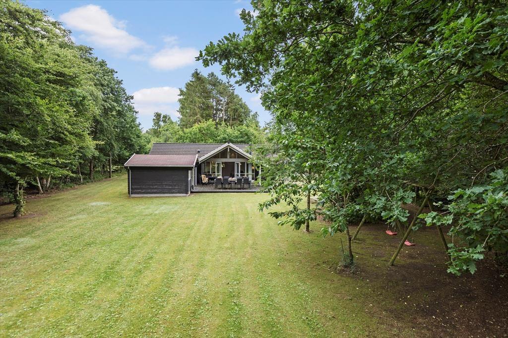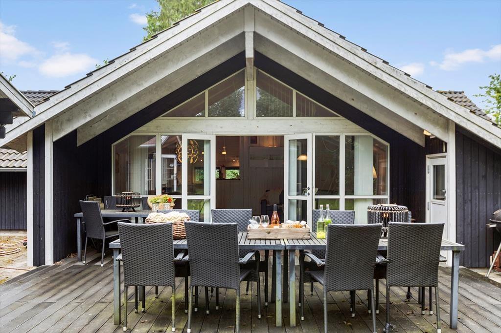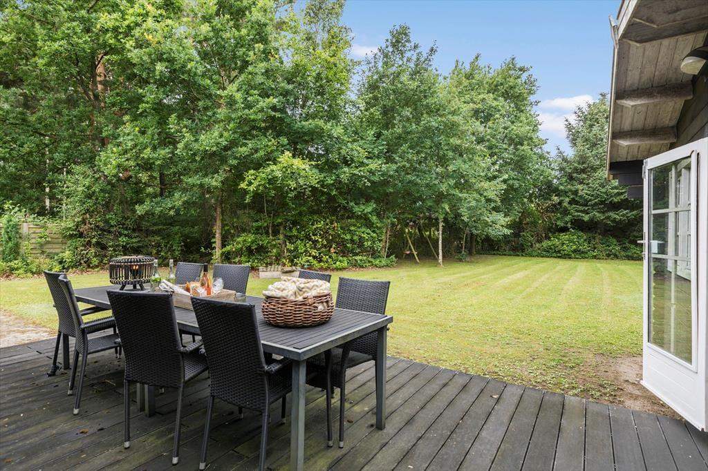 Nyd morgenmaden på terrassen, mens du kigger ud i den store have. Den naturskønne udsigt og det rige dyreliv skaber en fredfyldt start på dagen. Terrassen er udstyret med komfortable havemøbler og en grill, hvilket gør det nemt at nyde udendørs måltider i alle vejrtyper.