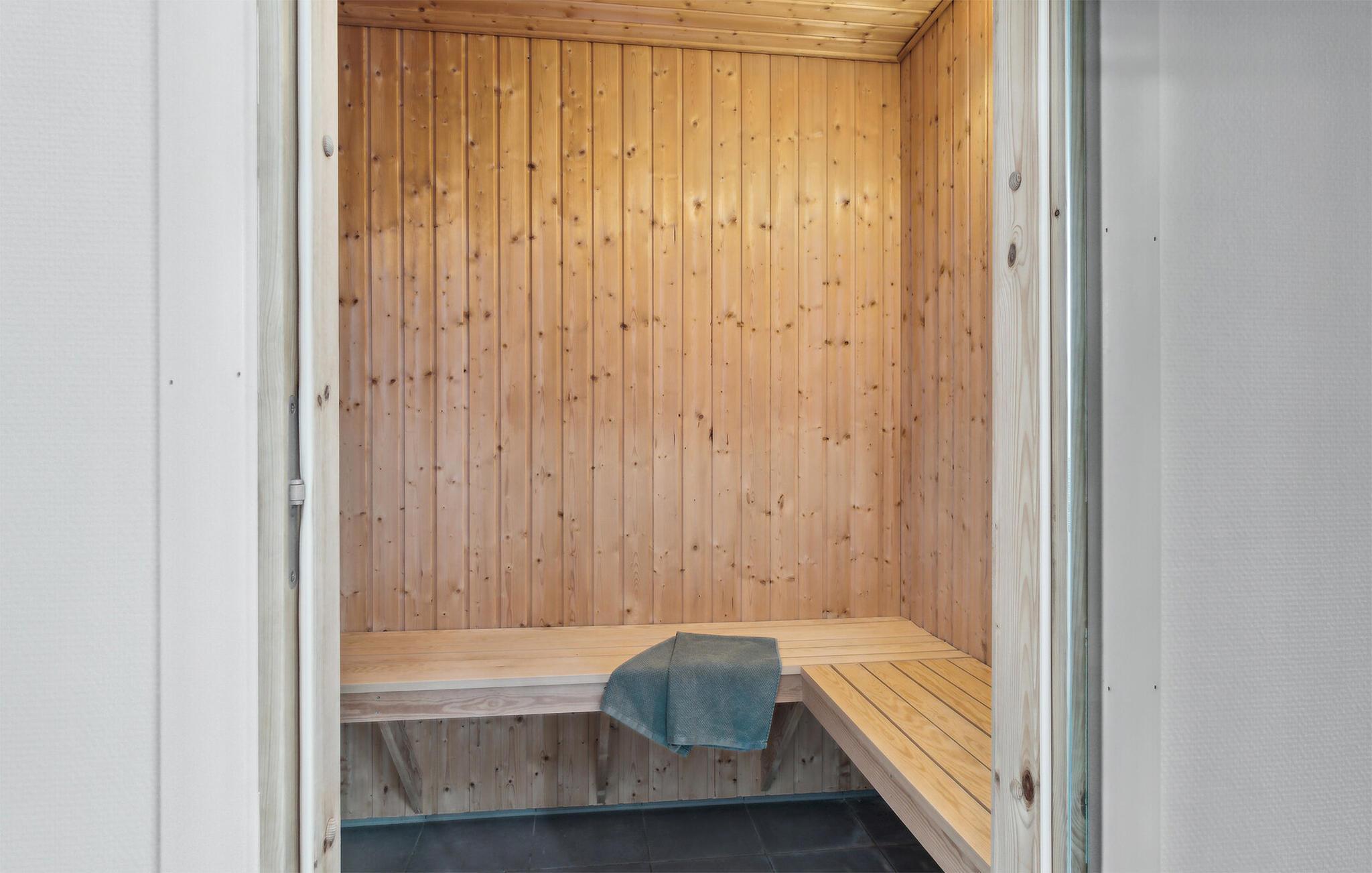 Rummeligt luksusferiehus med sauna, pool, aktivitetsrum og stor terrasse i Asserbo.