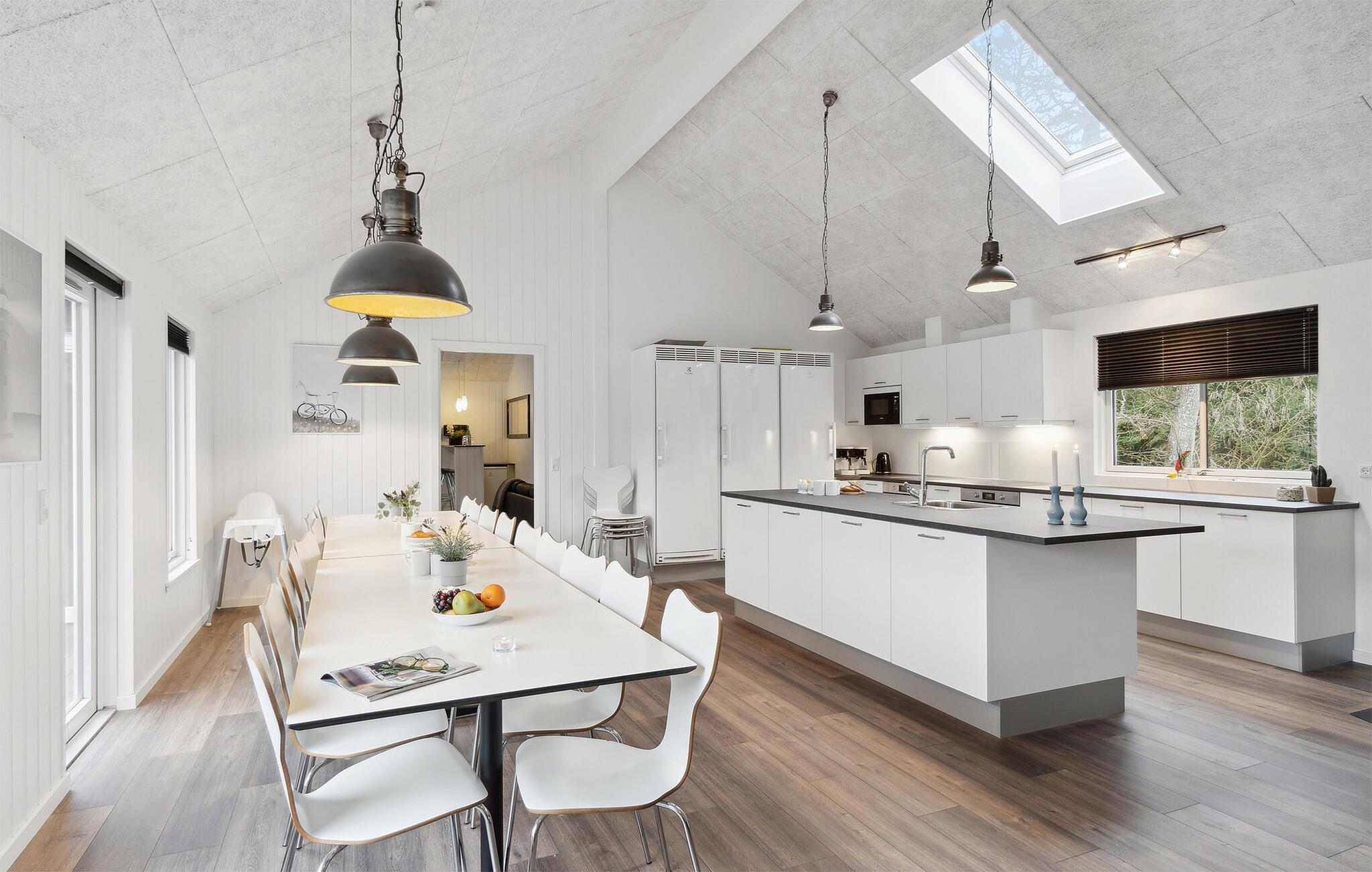 Oplev uforglemmelige feriedage i dette komfortable hus, der giver plads til flere familier. De lyse rum byder jer velkommen med højt til loftet og en indbydende indretning. Benyt det store, åbne køkken med kogeø, moderne udstyr og masser af opbevaringsplads til at tilberede måltider sammen. Sæt jer derefter ved det lange spisebord, og nyd hyggelige aftener, eller slap af i den komfortable opholdsstue på de bløde siddepladser. Benyt også det store aktivitetsrum med billard og bordtennis. Oplev desuden husets wellnessområde med sauna, spabad og en pool med rutsjebane.