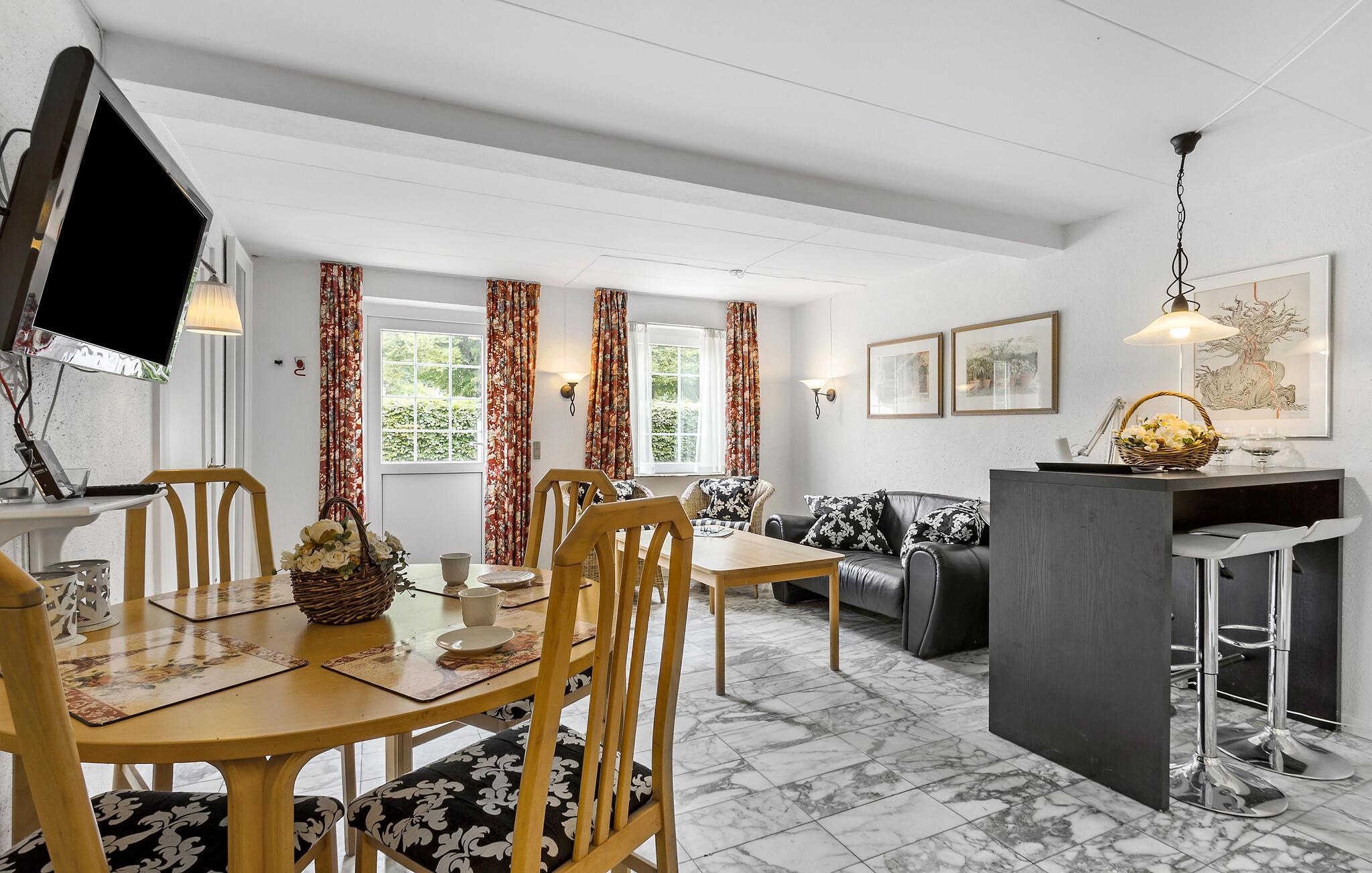 Charmerende lejlighed ved Kokkedal Slot med terrasse og fælles pool i naturskønne omgivelser.
