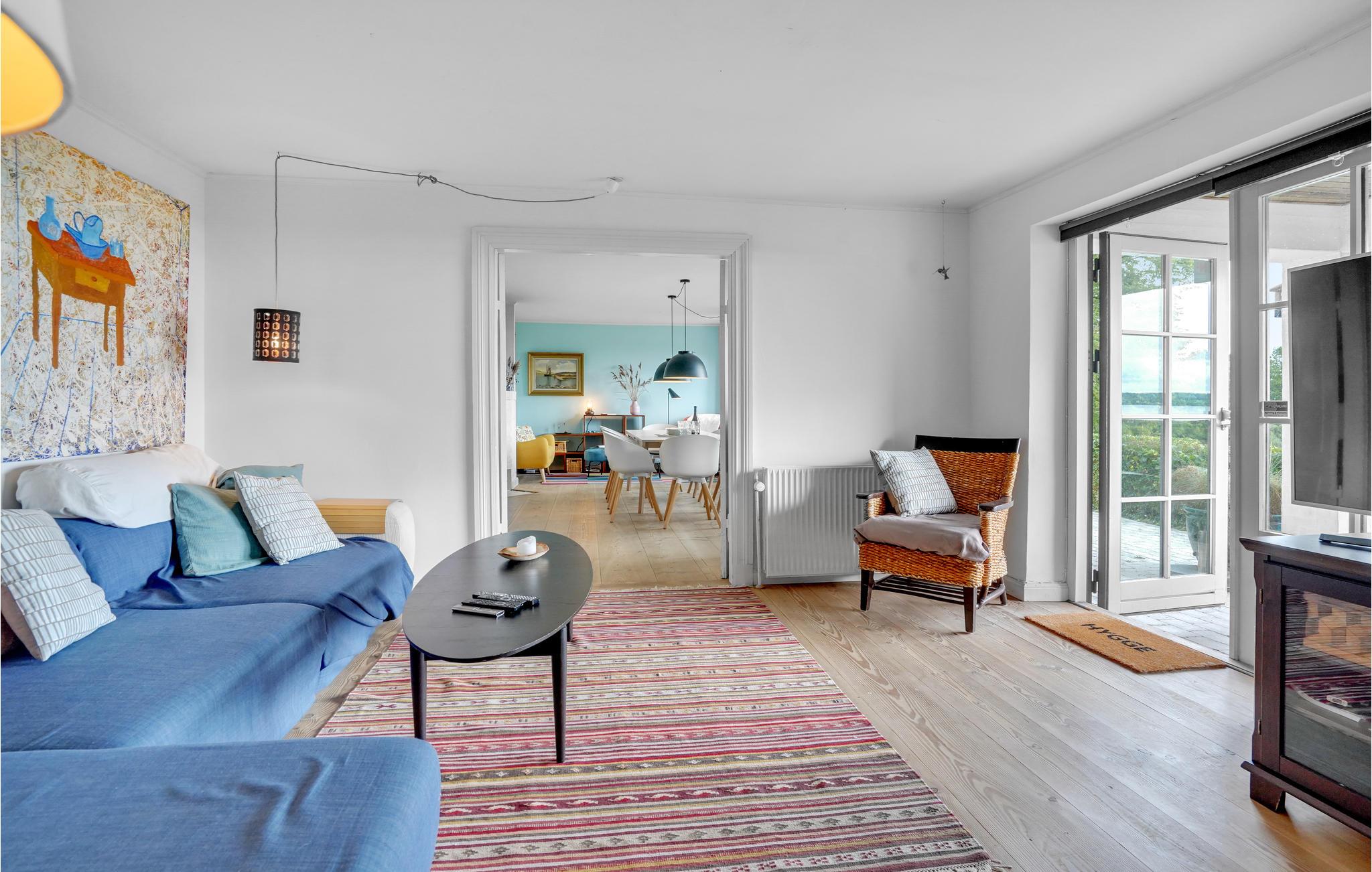 Fra både stue og førstesal er der en skøn udsigt ud over fjorden og engene. Huset ligger på en stor grund, med gode terrasser, hvor det er muligt at finde sol, læ eller skygge alt efter ønske. Det er muligt at købe brænde på stedet. Huset ligger i et naturskønt område, der indbyder til spadsereture, samt med fjorden hvor I kan bade og fiske. Den berømte Restaurant Knapp ligger kun 500 m fra huset, forkæl jer selv med et besøg og smag den gode mad. Besøg også Aabenraa der bare ligger 5 min. væk i bil, her kan I købe ind, nyde en kop kaffe og en kage på en af cafeerne og gå en tur på havnen og opleve det maritime miljø.