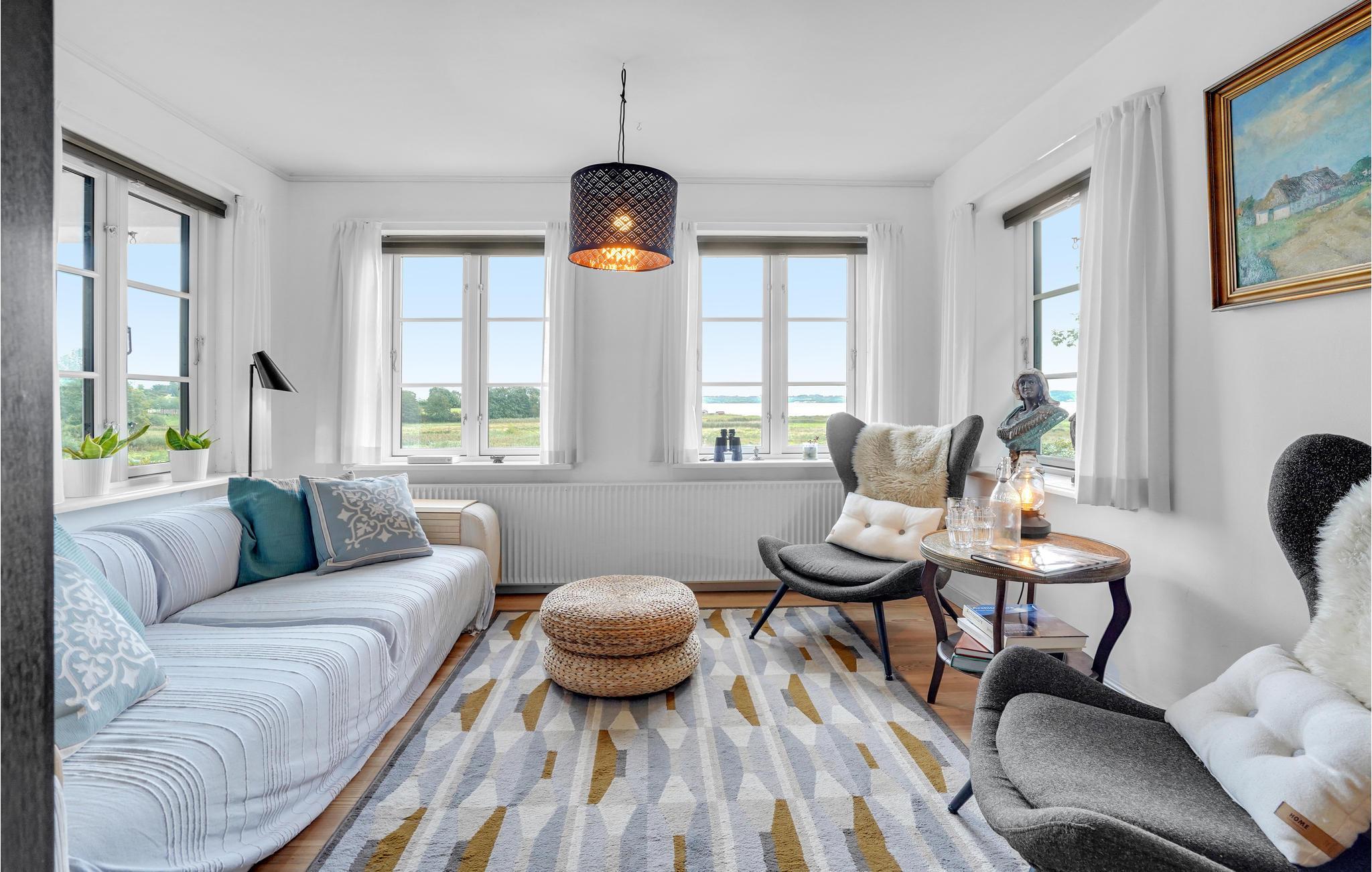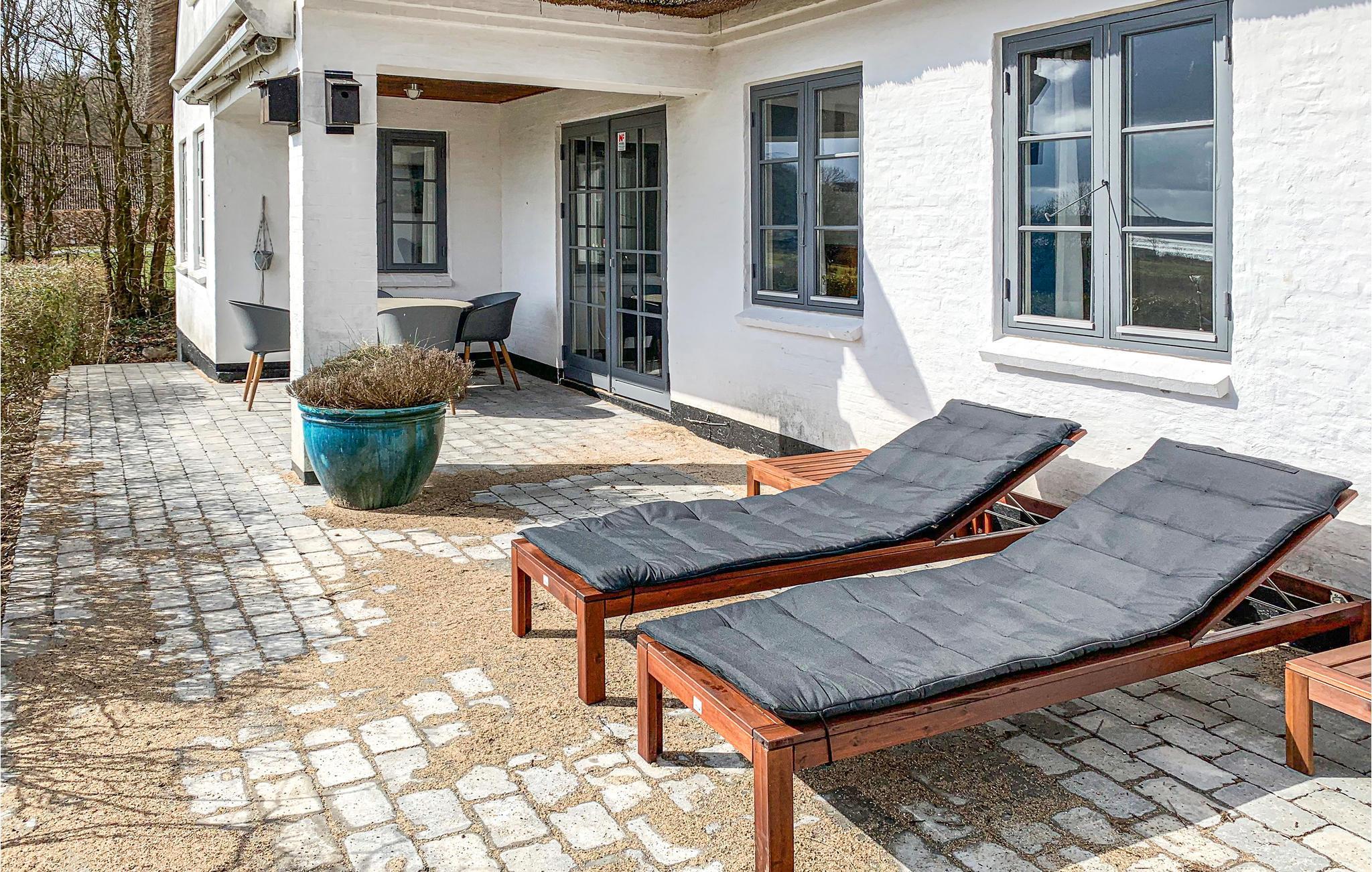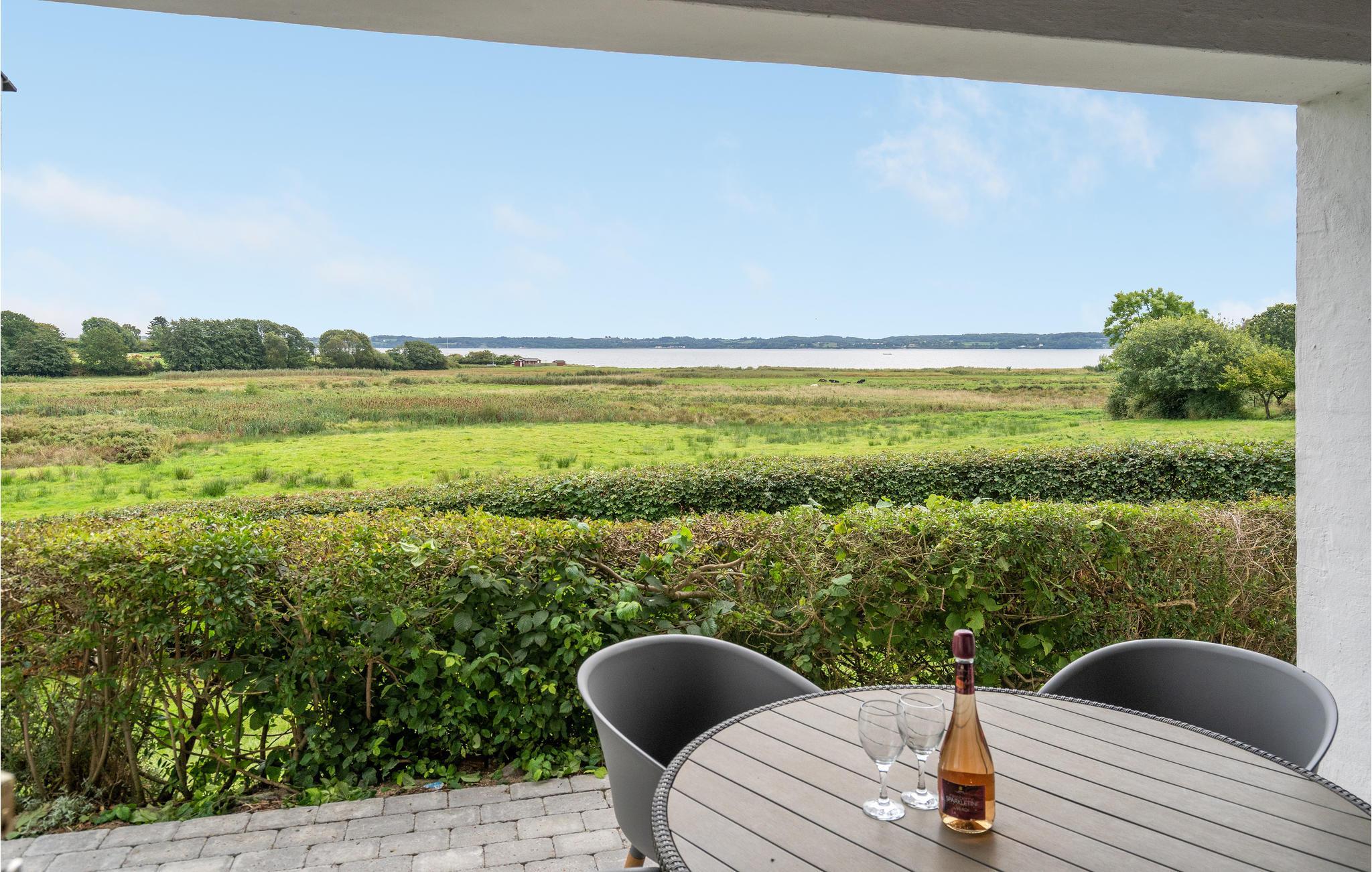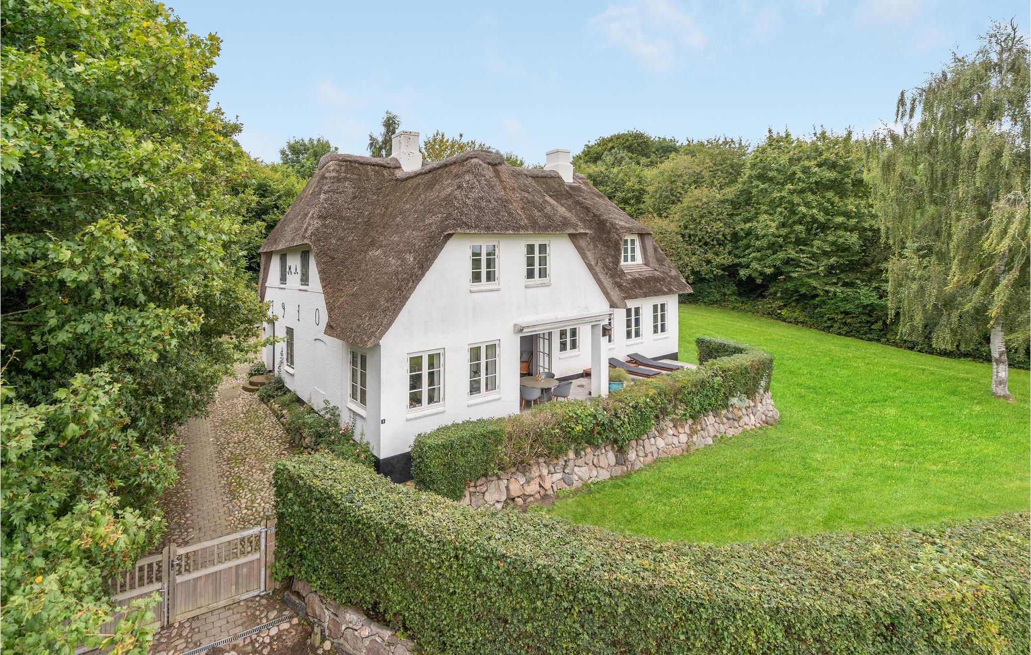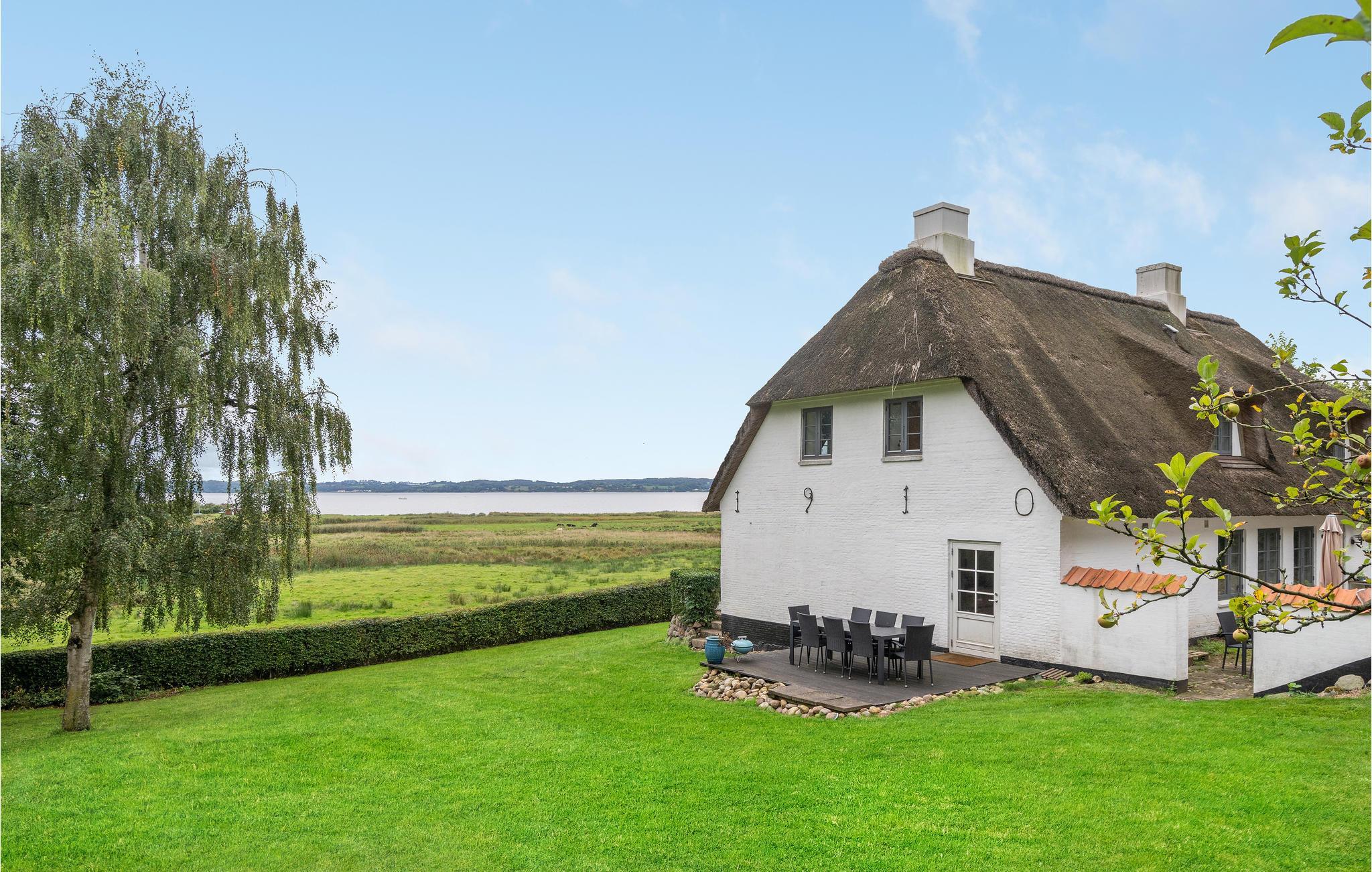 Idyllisk stråtækt feriehus med panoramaudsigt over Aabenraa fjord og luksuriøse faciliteter.
