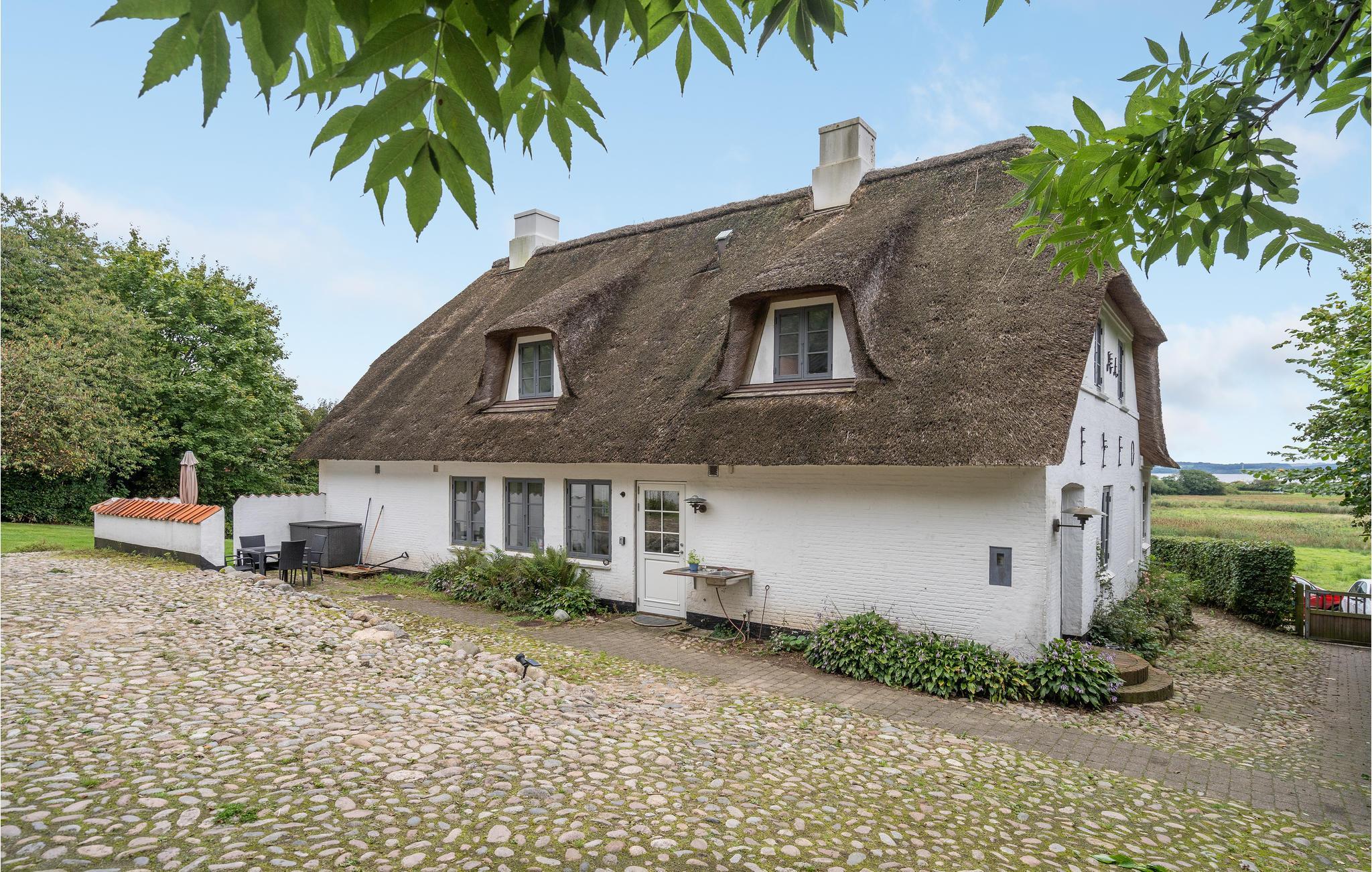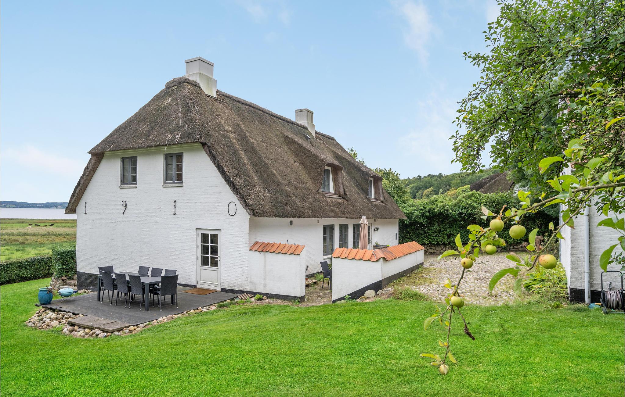 Et smukt og idyllisk stråtækt feriehus med betagende udsigt ud over Aabenraa fjord.