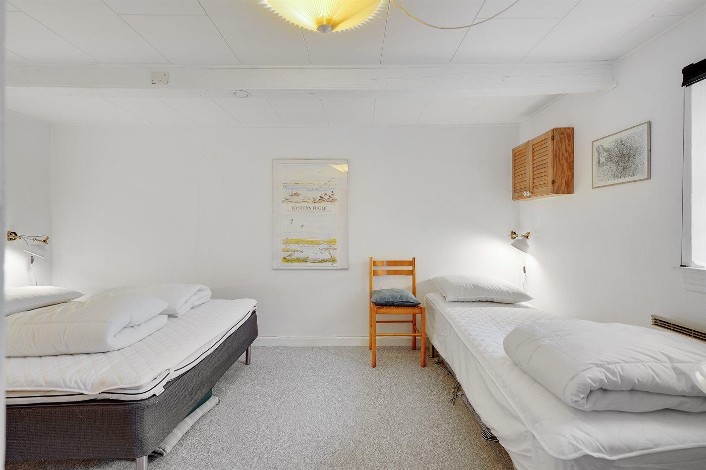 Der er i alt 3 soveværelser. Sovepladserne fordeler sig på: 6 sovepladser i dobbeltsenge. 1 soveplads i enkeltseng. Derudover er der 1 stk. barneseng.