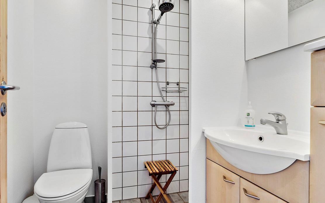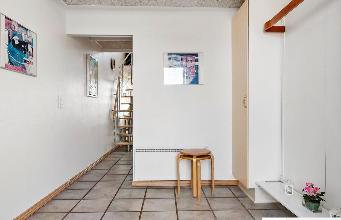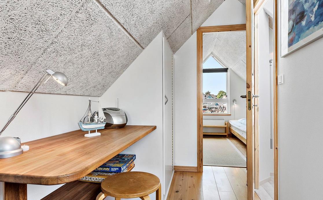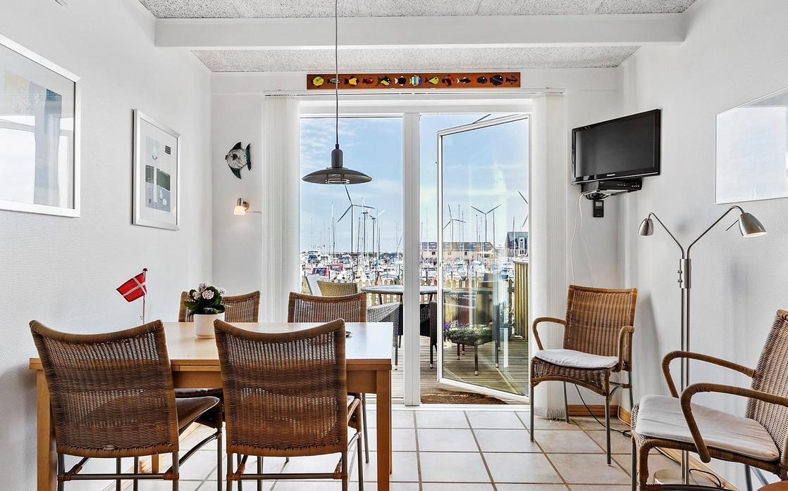 Fra forgangen kommer man ind i det lyse alrum med stue og køkken i åben forbindelse og udgang til terrasse med udsigt over lystbådehavnen. Her er spiseplads til 4 personer, TV med danske (inkl. TV2) og tyske kanaler og radio. Køkkenet er velindrettet med keramiske kogeplader, mikrobølgeovn og køle-/fryseskab. Herfra fører trappe til hems, som er indrettet med opholds-/udsigtsstue, soveværelse med 2 enkeltsenge samt toilet. I den rummelige forgang er der en "skjult/væghængt" dobbeltseng, der nemt slås ud, så forgangen fungerer som soveværelse for 2 personer. Desuden er her indgang til fint flisebadeværelse med bruseniche. Hele huset har gulvvarme og er velisoleret, så det kan bebos hele året. Der er internetadgang.