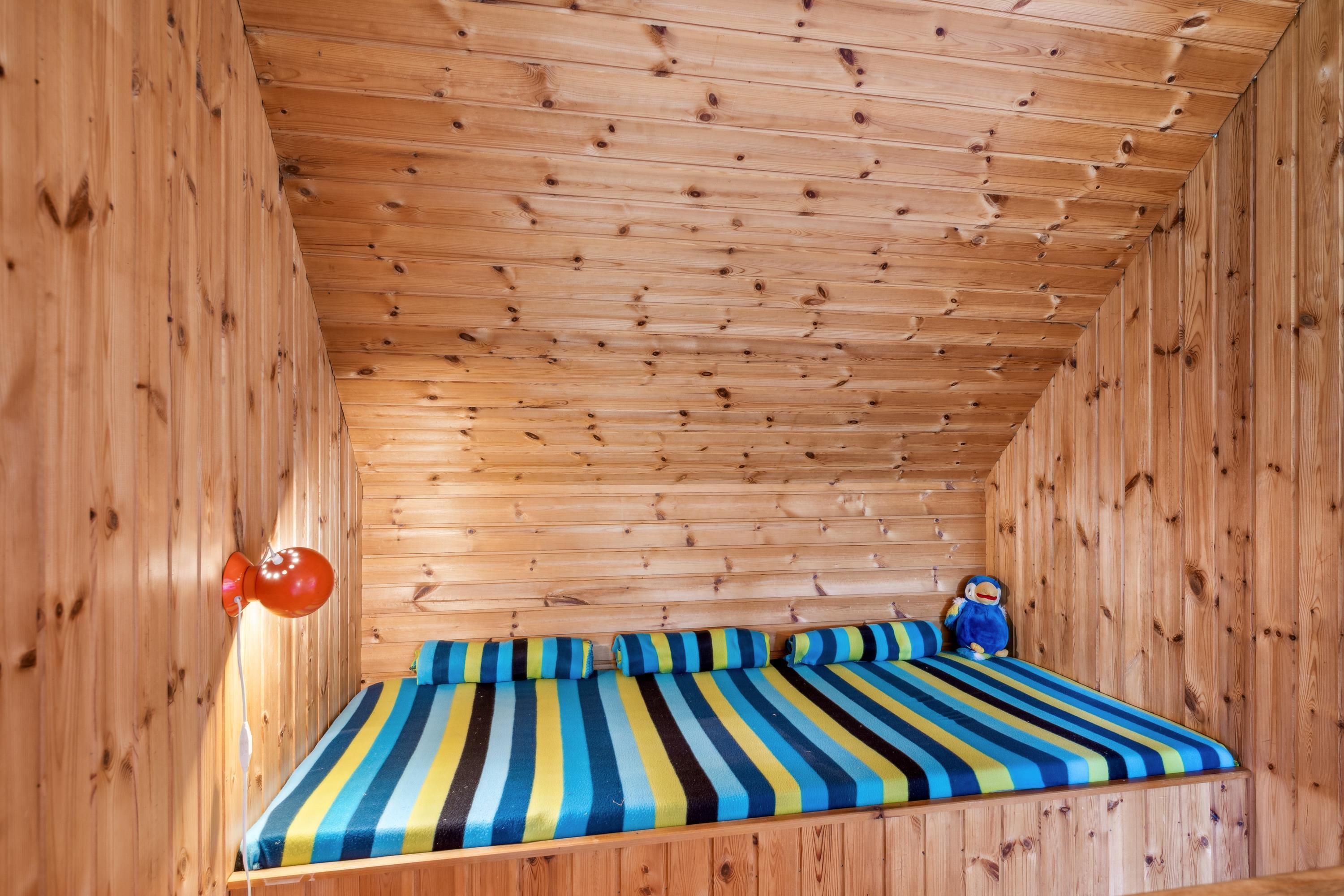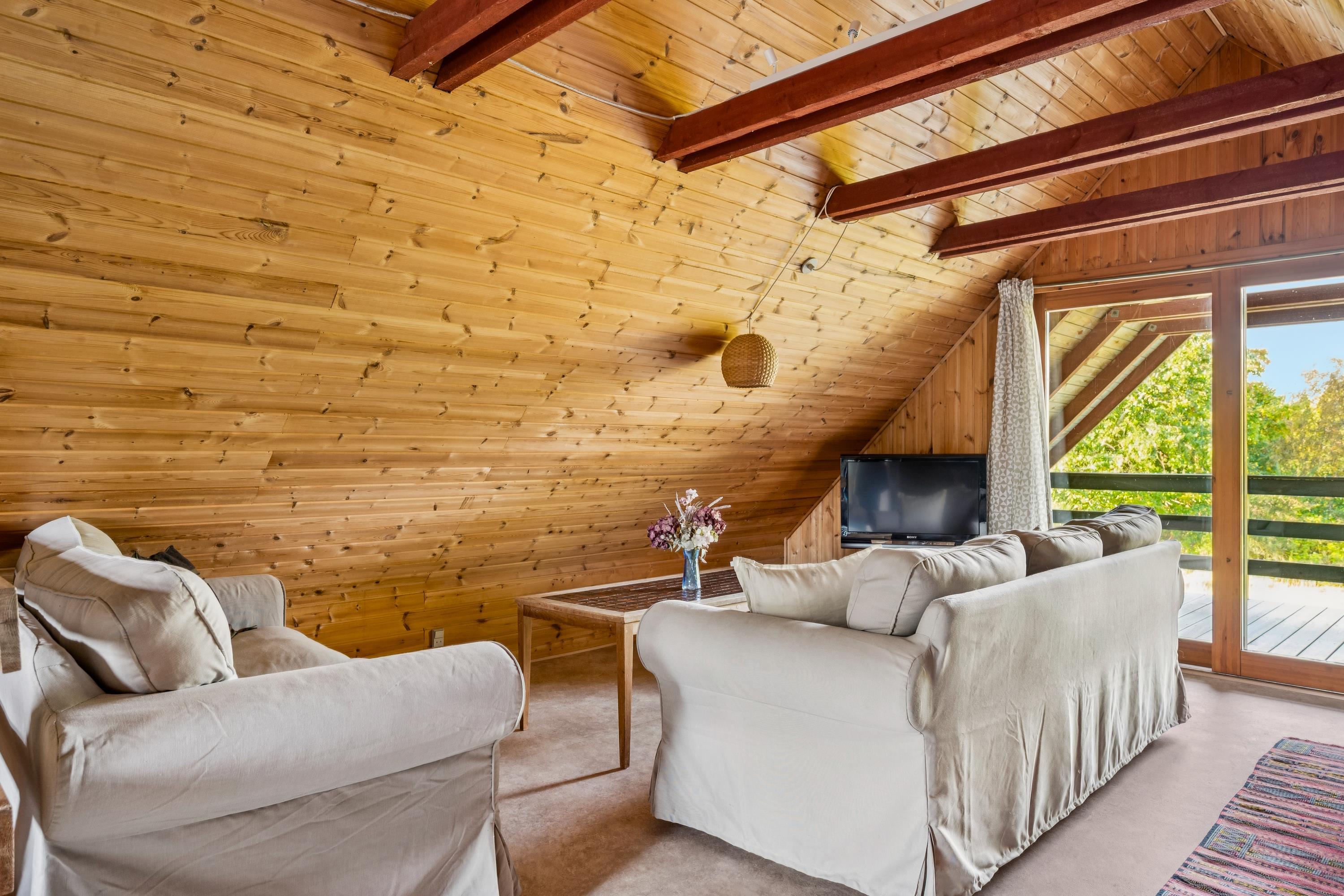 Tæt på en af Djurslands mest børnevenlige sandstrande finder man dette ældre autentiske feriehus. Huset som er i to plan indeholder i underetagen en hyggelig stue med god spiseafdeling samt et ældre, men funktionelt køkken. To soveværelser, heraf et værelse med en dobbeltseng og et værelse med to enkeltsenge. Pænt badeværelse med bruseniche. Opgang til 1 sal fra stuen hvor man finder et stort opholdsrum samt to enkelt senge. Huset er beliggende på en stor naturgrund