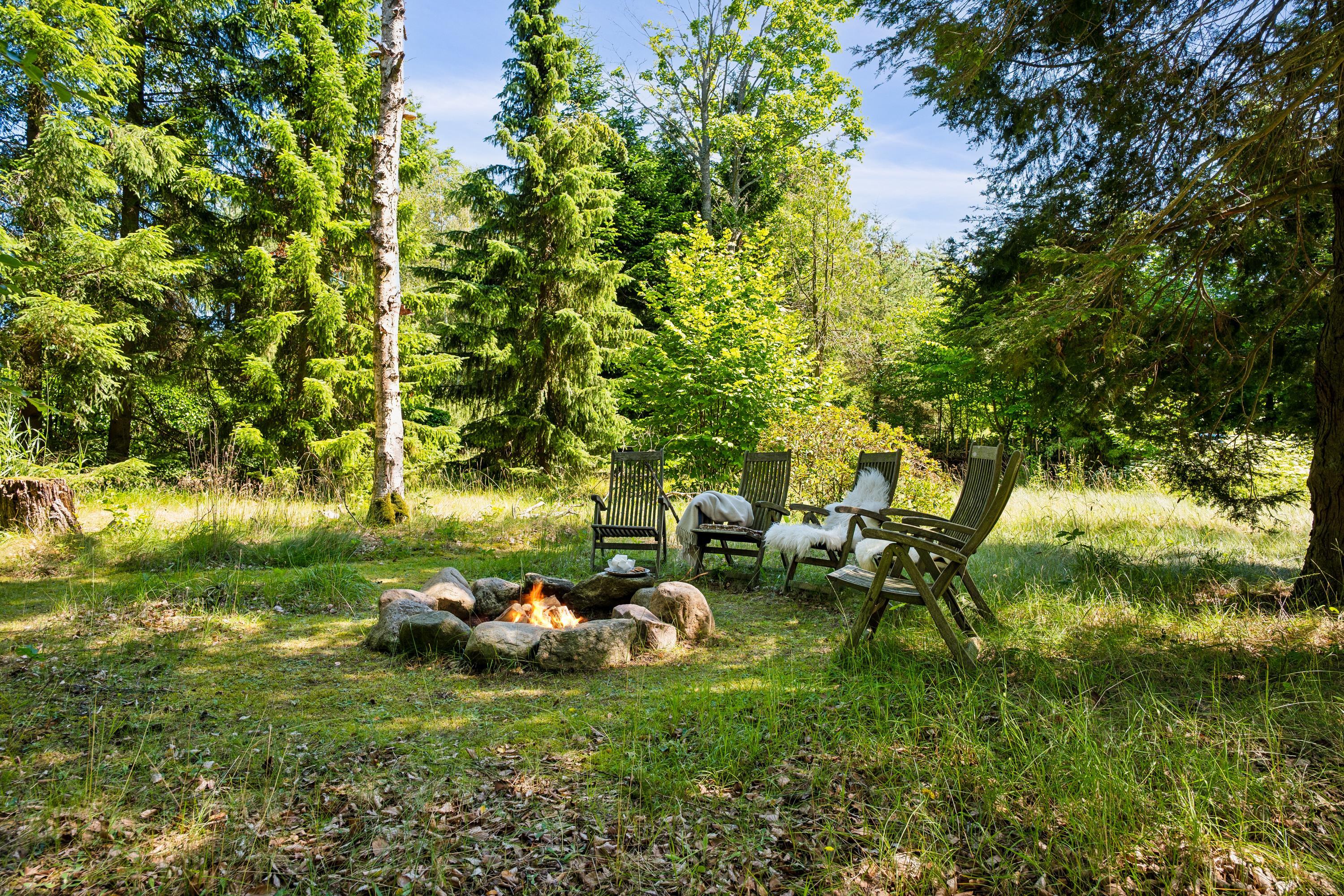 Hyggeligt feriehus i naturskønt område nær Bønnerup Strand med brændeovn, bålplads og overdækket grillområde.