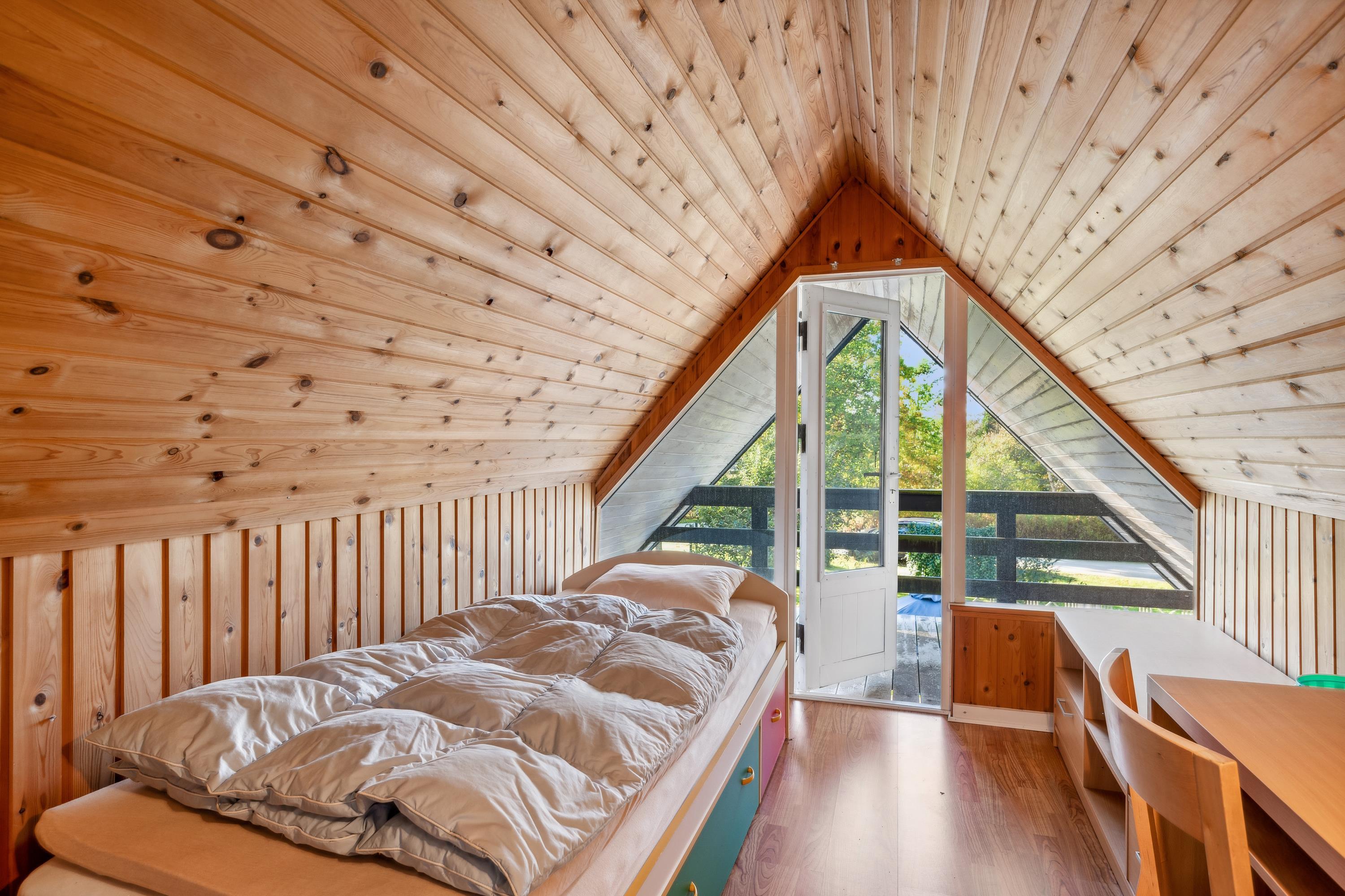 I en skønt skovområde mellem Grenaa og Bønnerup finder man dette ældre, men hyggelige hus i to plan. I underetagen finder man en hyggelig stue med brændeovn og varmepumpe og med udgang til en god stor terrasse med havemøbler. Mindre men funktionel køkkenafdeling med b.la. mikrobølgeovn. To gode soveværelser med dobbeltsenge samt et pænt badeværelse med bruseniche. Fra stuen er der opgang til 1 sal og her finder man to værelser, heraf er det ene med en dobbeltseng og det andet er med en enkeltseng. Til de små feriegæster er der høj barnestol samt barneseng. Der er internet i huset. Huset er beliggende på en dejlig grund med stor græsplæne, velegnet til udendørs leg og aktiviteter.