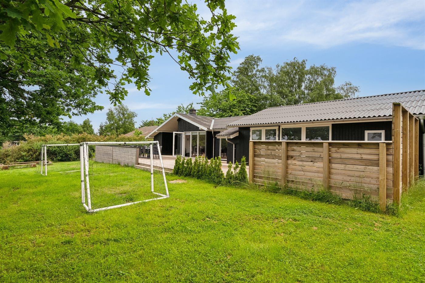 Her findes nogle skønne terrasser, som også delvist er overdækket og, hvorfra solen og de smukke omgivelser i høj grad kan nydes. Ikke nok med at sommerhuset har en fantastisk swimmingpool, der er også både sauna, og udenfor er der legefaciliteter til mindre børn på den store og børnevenlige græsplæne med god plads til at boltre sig på.