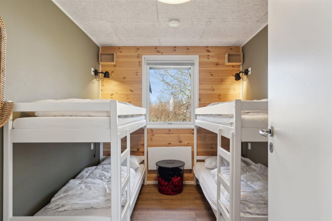 Der er i alt 4 soveværelser. Sovepladserne fordeler sig på: 4 sovepladser i dobbeltsenge. 2 sovepladser i enkeltsenge. 4 sovepladser i køjesenge. 2 af disse sovepladser befinder sig i anneks. Derudover er der 1 stk. barneseng.