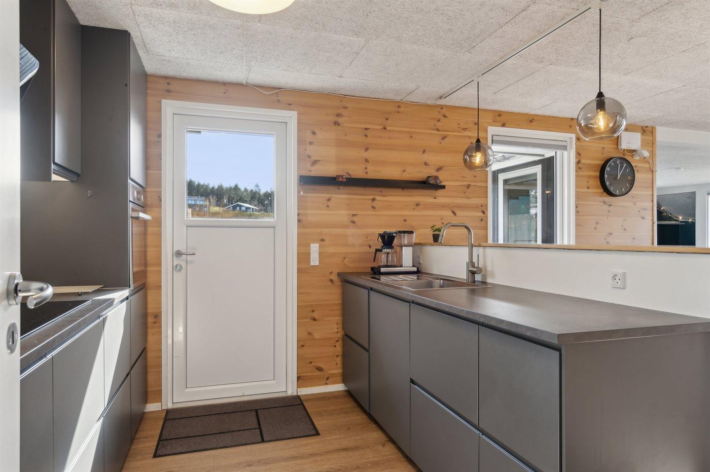 Køkkenet er udstyret med 1 køleskab. Der er 4 induktionskogeplader, varmluftovn, mikrobølgeovn samt opvaskemaskine.