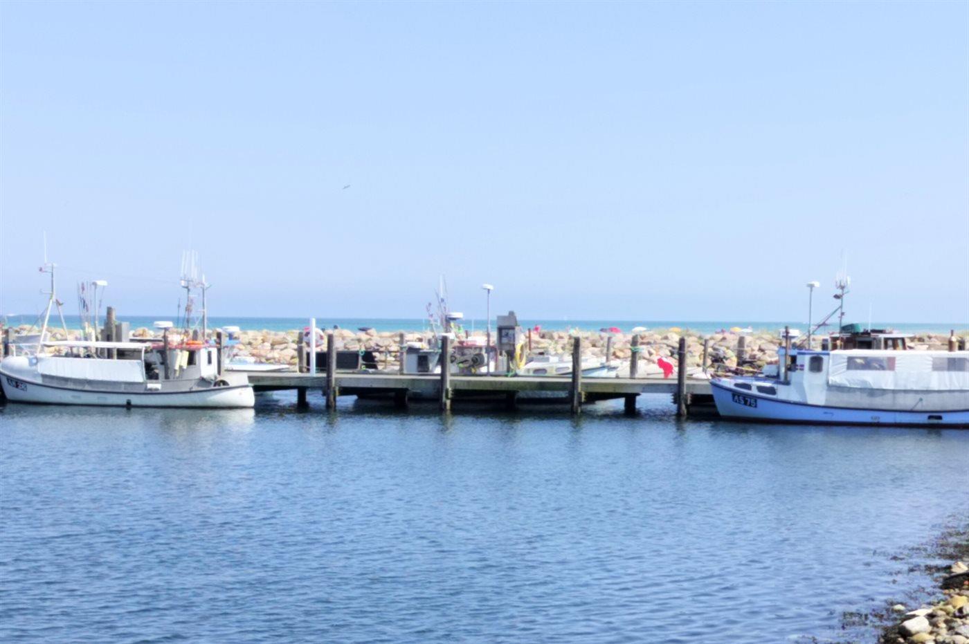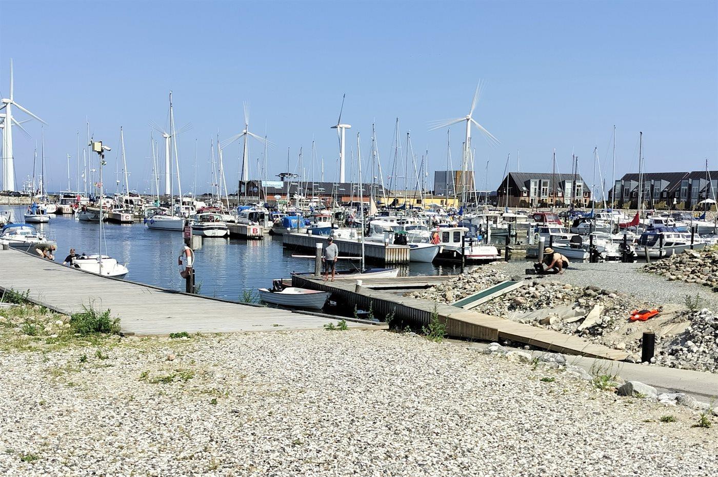 Lejlighed ved Bønnerup Strand med panoramaudsigt og terrasse direkte til lystbådehavnen.