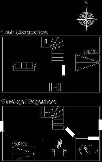 Der er i alt 1 soveværelse. Sovepladserne fordeler sig på: 2 sovepladser i dobbeltseng. 2 sovepladser i enkeltsenge. 2 sovepladser i sovesofa (dobbelt). 2 af disse sovepladser befinder sig i opholdsstuen og 2 af dem befinder sig på hemsen. Derudover er der 1 stk. barneseng.