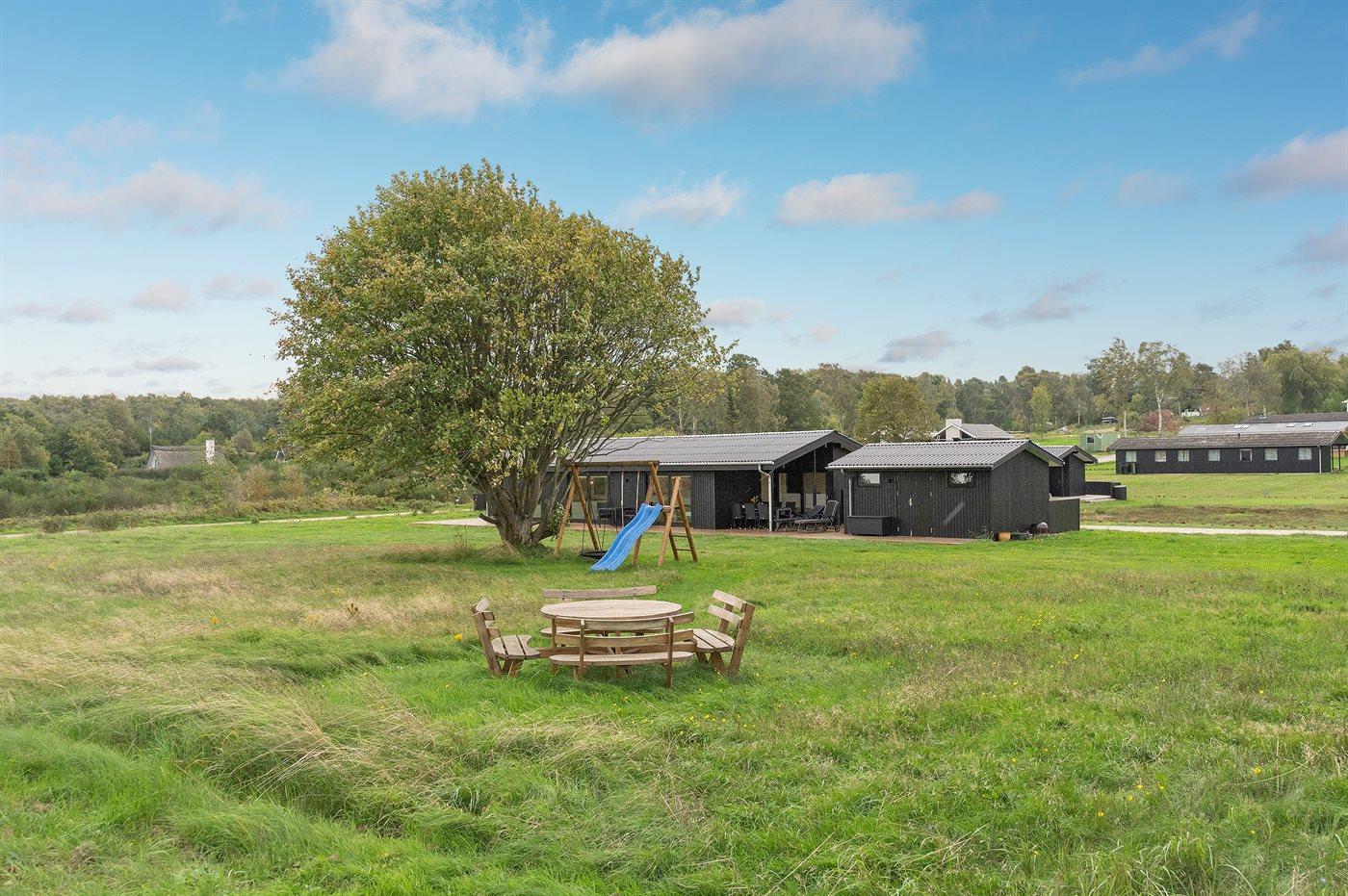 Ferieboligen er beliggende på en 2295 m² stor naturgrund. Der er 300 m til havet. Nærmeste forretning er beliggende i en afstand af 1500 m. Der er en golfbane i en afstand af 20000 m. Til ferieboligen hører 120 m² terrasseareal. Desuden er der 8 m² overdækket terrasse. Der er redskabsrum. Gynge. Rutchebane. Grill til rådighed. Parkering ved ferieboligen.