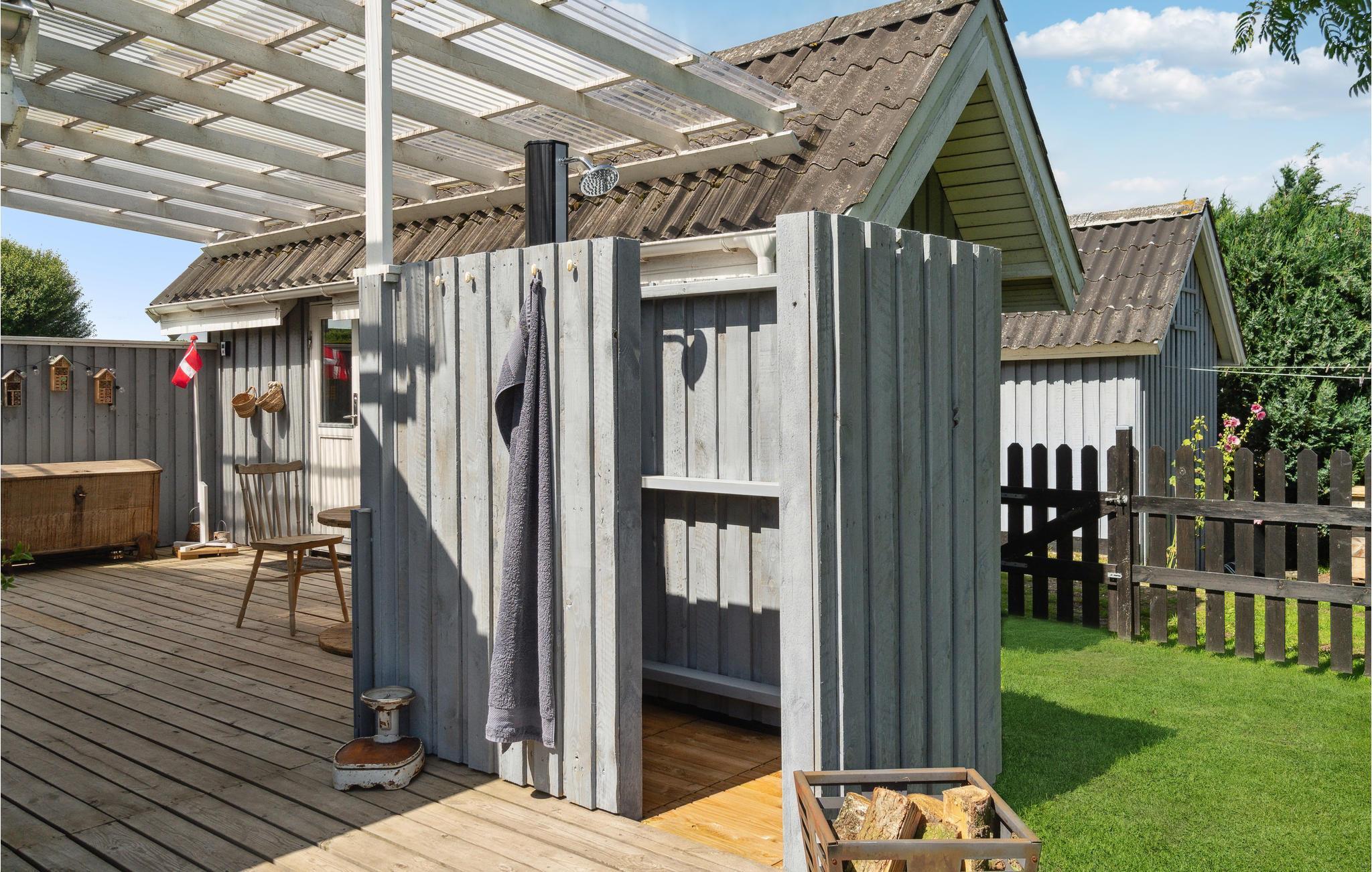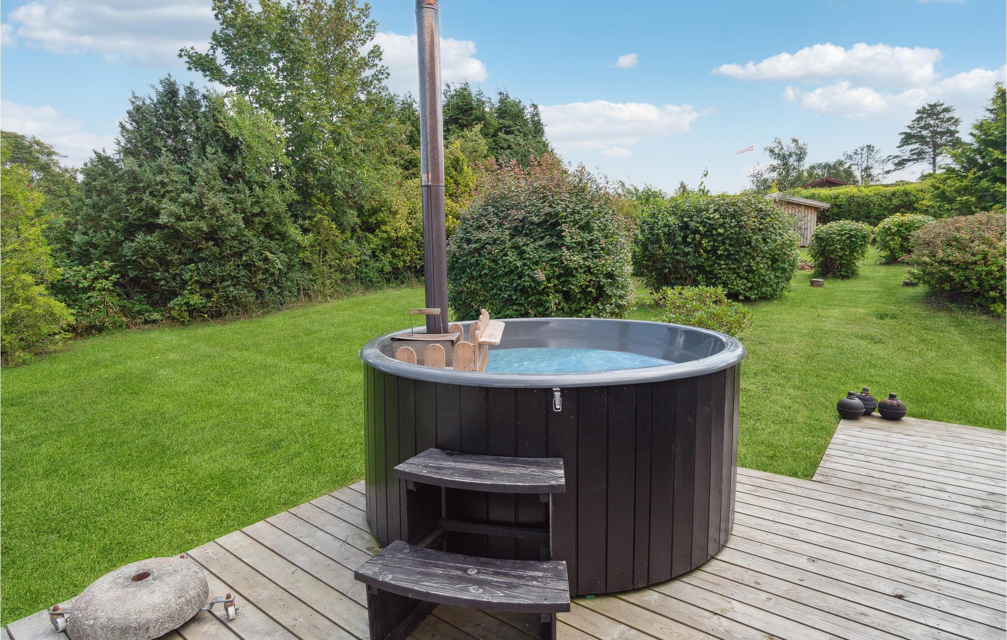I Bønnerup på Norddjursland ligger dette velholdte sommerhus med havkig og udendørs vildmarksbad til 4 personer. Huset er nænsomt restaureret, og indeholder bl.a. et soveværelse, badeværelse, en stor stue der ligger sammen med køkkenet og har udgang til en af terrasserne. Til huset hører endvidere et stort anneks med yderligere et soveværelse samt et badeværelse. Helt perfekt hvis I er to familier afsted på ferie sammen.