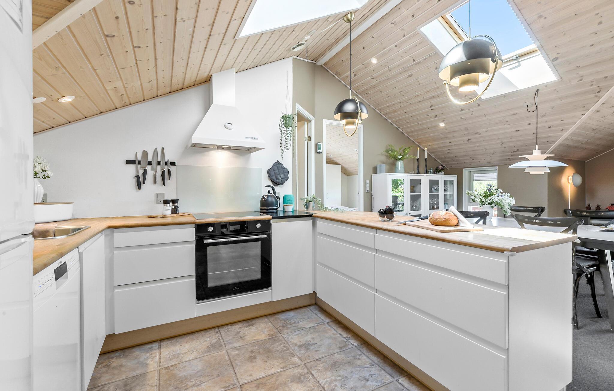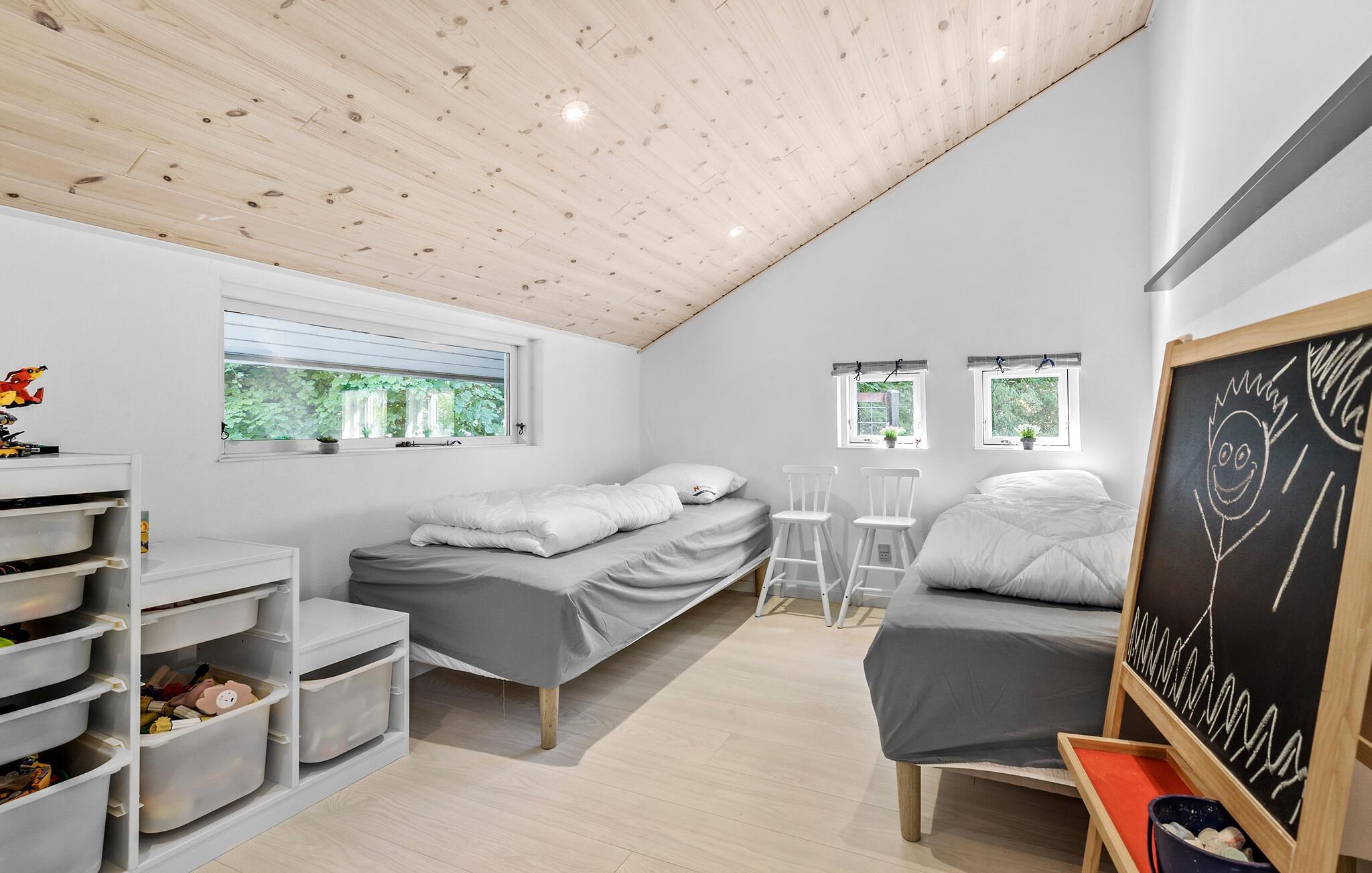 Tag familien under armen og rejs til Djursland, hvor I en kort gåtur fra Bønnerup Strand får base på en skøn, ugeneret naturgrund i dette attraktive træhus. Her får I, inde som ude, den ideelle ramme om årets ferie i absolut dejlige omgivelser. Huset er flot indrettet med loft til kip, åbent boligkoncept og gode møbler, der gør det nemt at sænke skuldrene og slappe af efter en aktiv feriedag. Hvis vejret viser tænder, kan I fyre op i brændeovnen og nyde dens knitrende varme til madlavningen i det veludstyrede køkken og aftenhyggen i sofahjørnet. Eller måske I skal forkæle jer selv med lidt aftenwellness i spabadet?