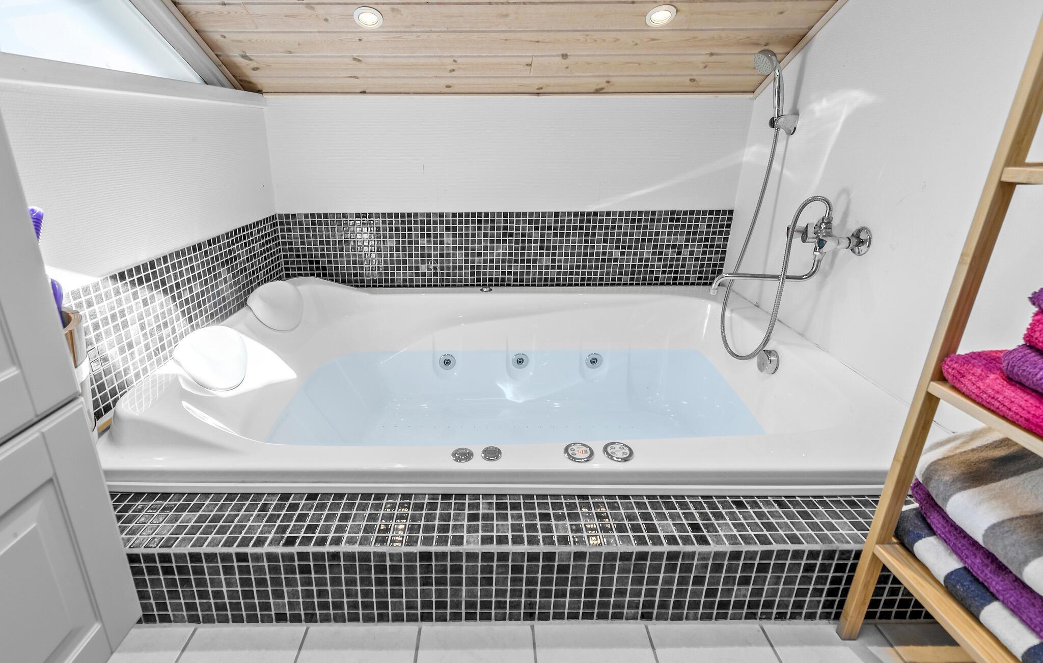Gør jer klar til en vidunderlig ferie tæt på stranden i dette flotte og familievenlige hus med spabad.