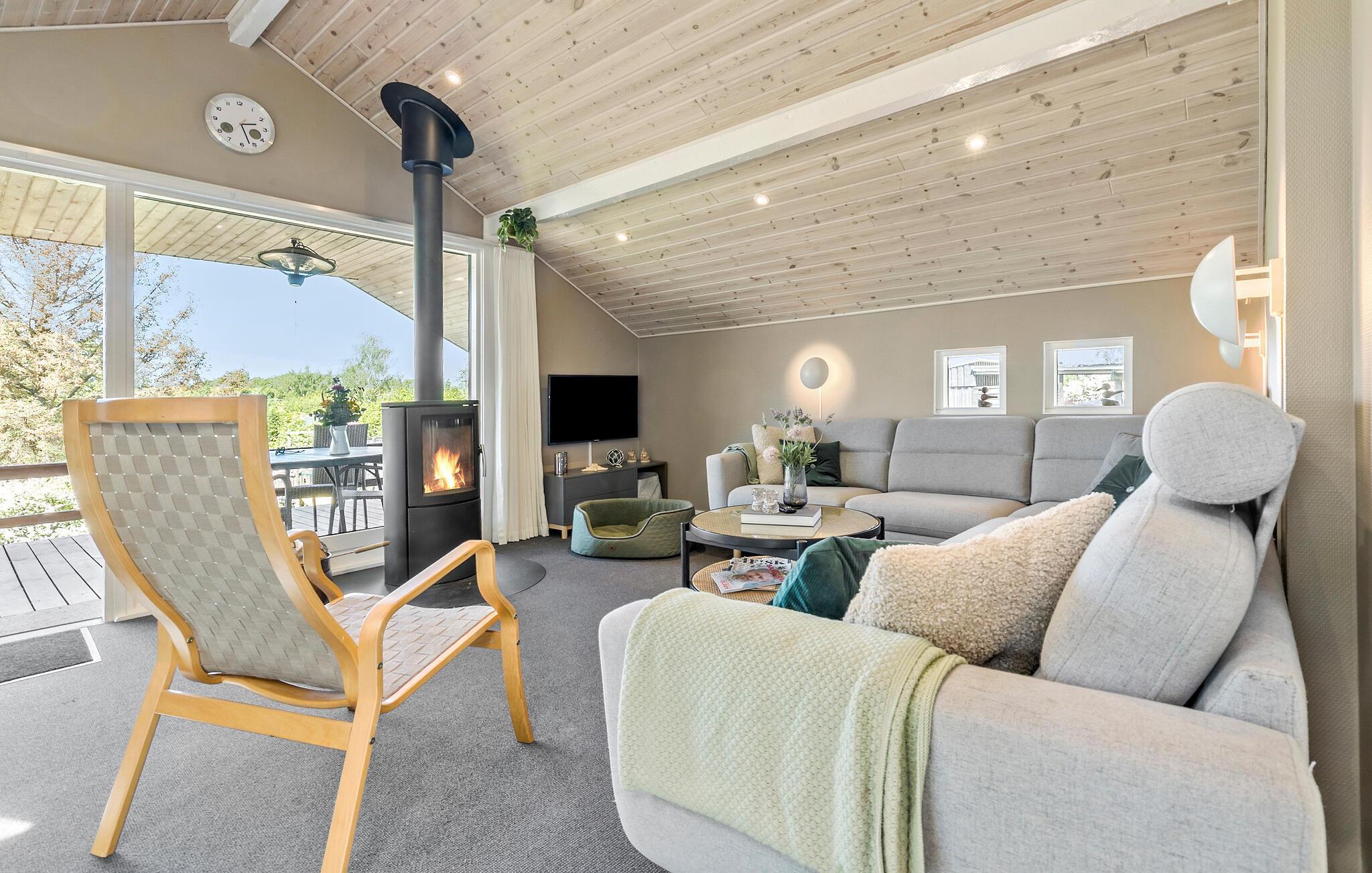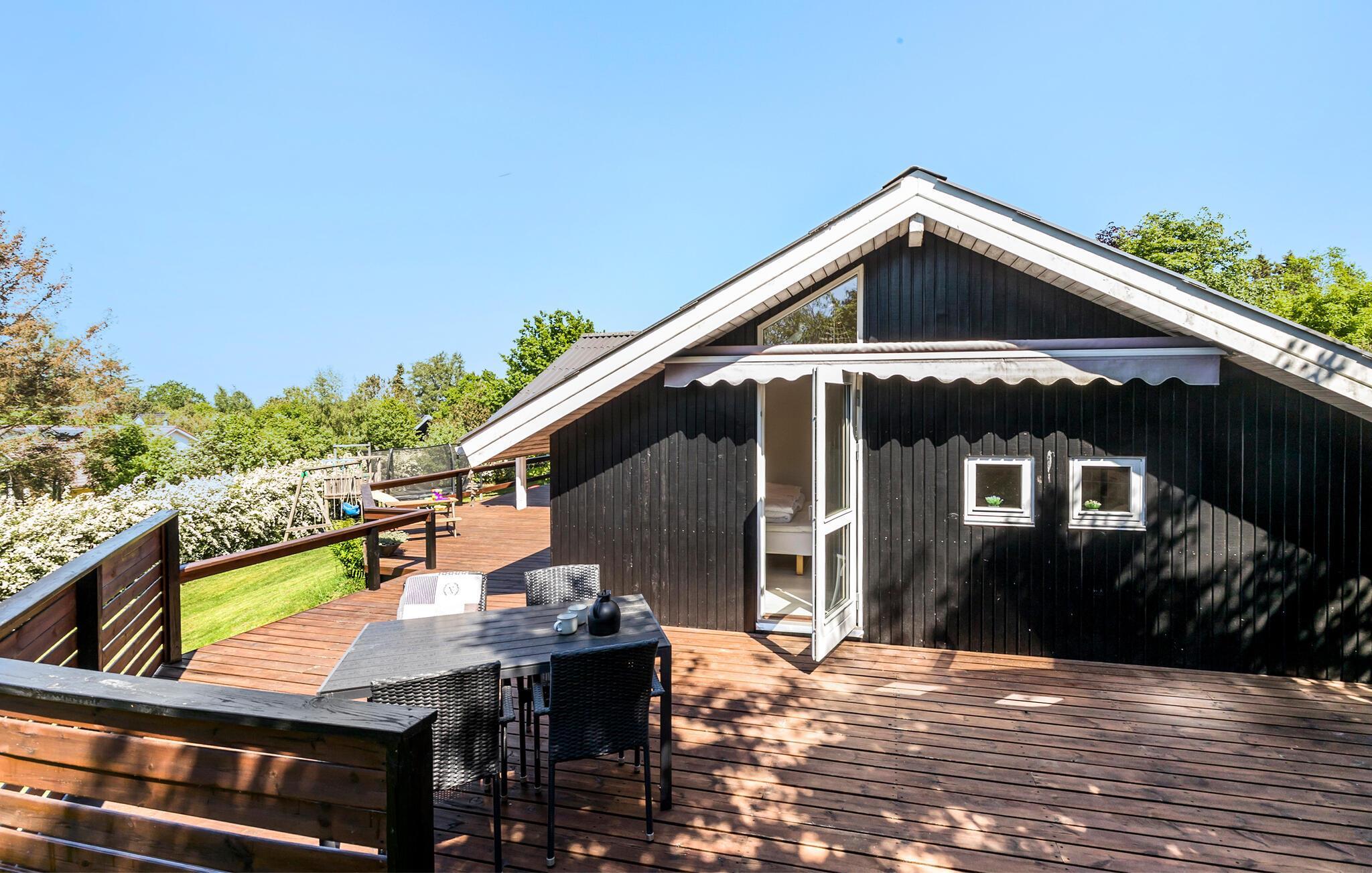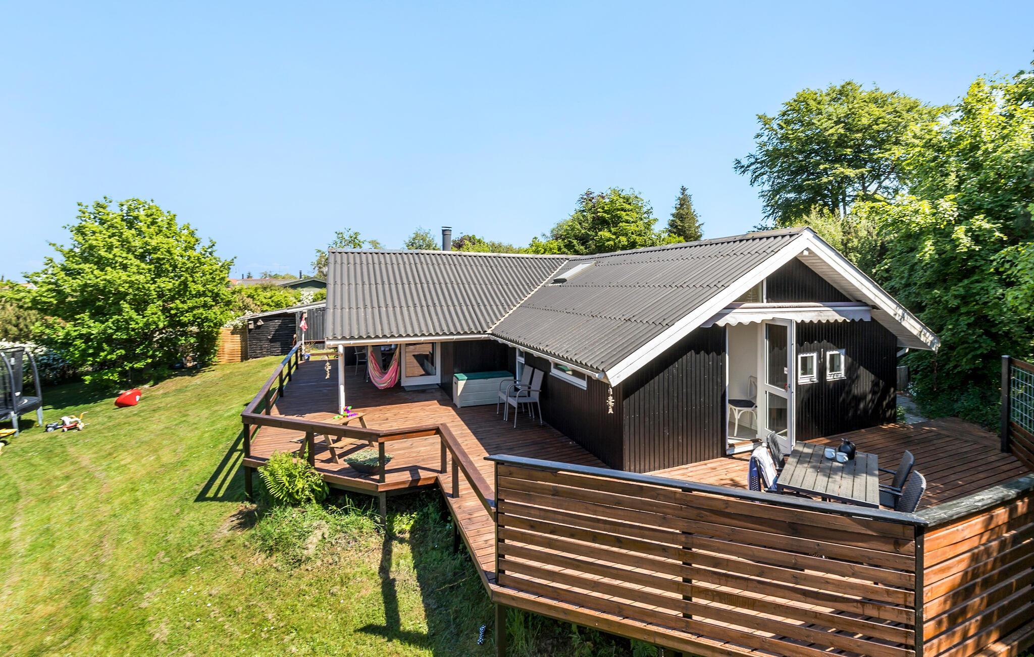 Flot, familievenligt træhus nær Bønnerup Strand med spabad, stort udeområde og hyggelig brændeovn.