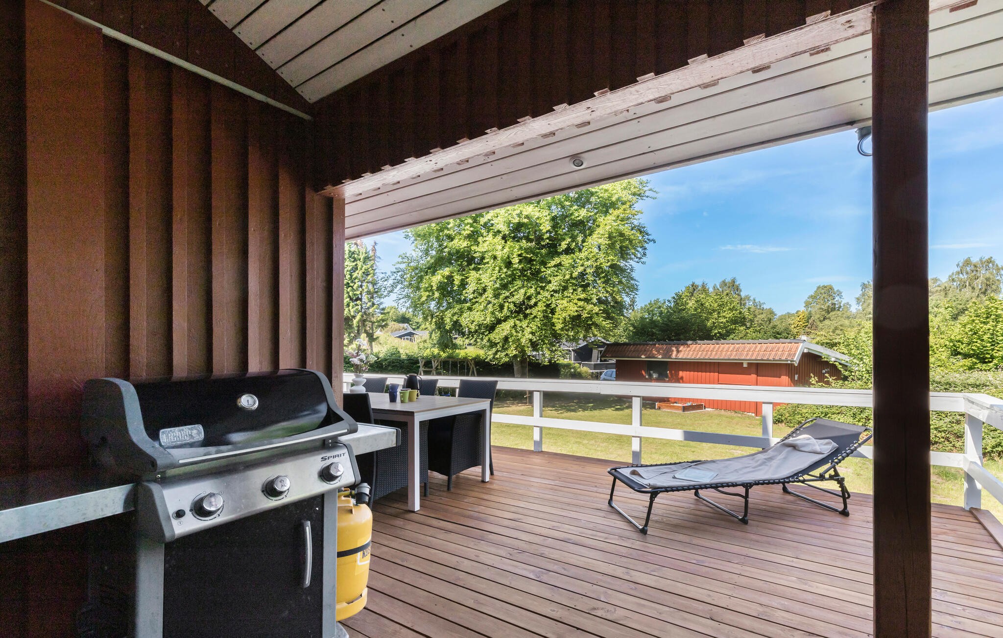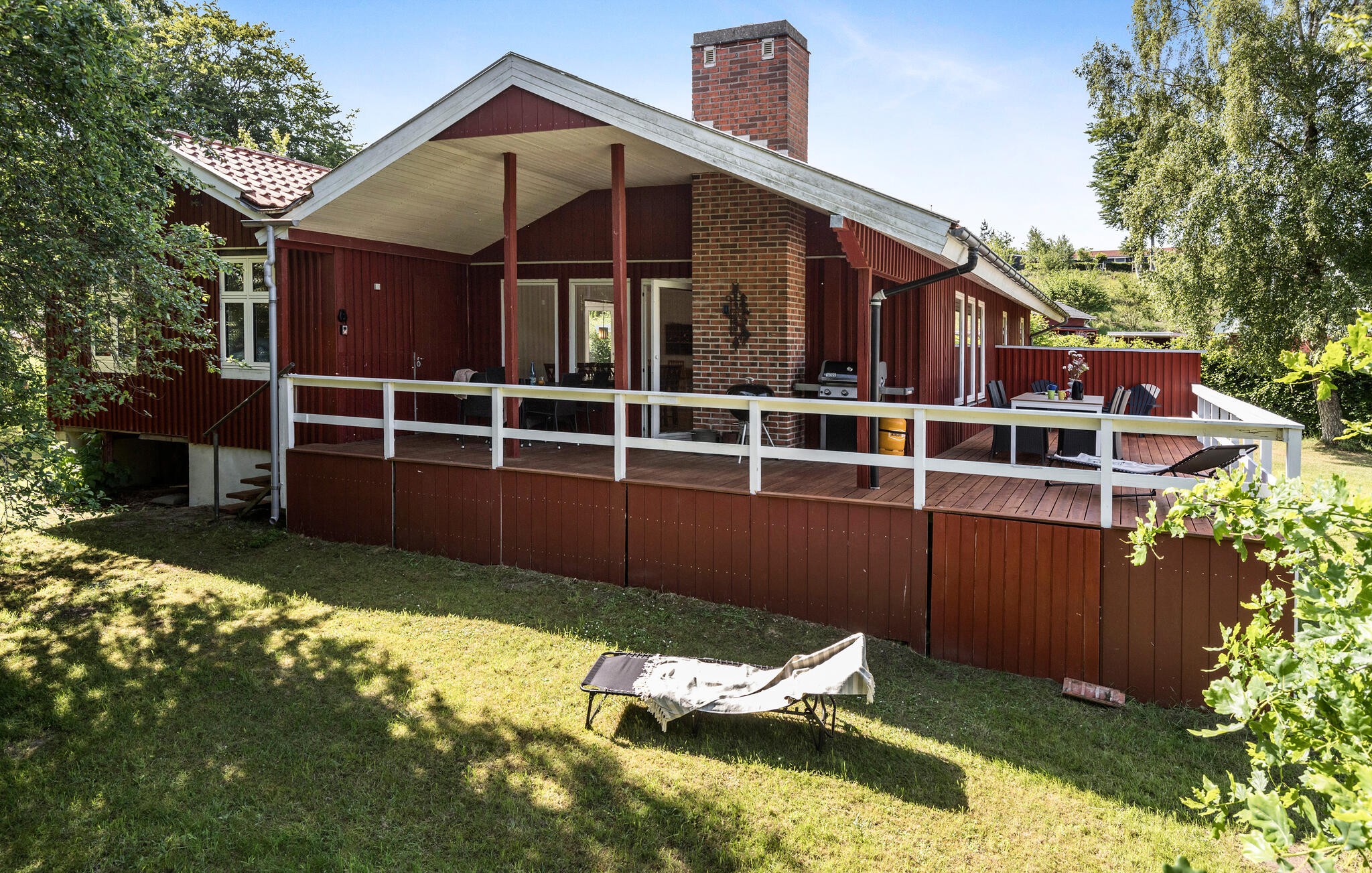 Jeres terrasse er det ideelle sted til en dejlig morgenmad med udsigt over den idylliske, store have, som børnene vil elske. Nyd solen på liggestolen, fordyb jer i en bog og snak over stemningsfulde grillmad i sommernatten.