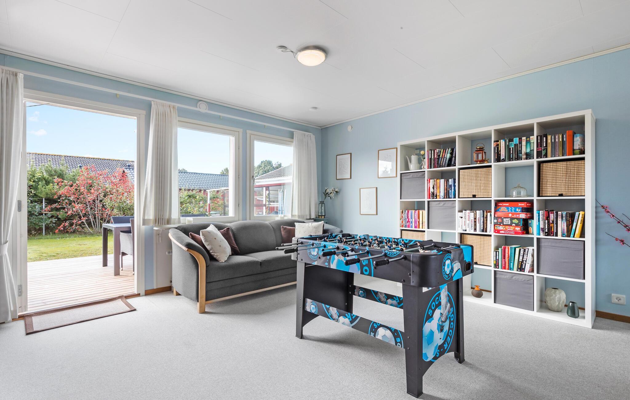 Dette dejlige feriehus ligger kun en kort gåtur fra sandstranden i Bønnerup. Her kan I slappe af med jeres familie eller et par venner. Huset har alt, hvad I kan ønske jer, og indbyder til en turnering i bordfodbold. Med sine hjemlige faciliteter egner huset sig særligt godt til børnefamilier. Tag strandtasken og gå til den lavvandede sandstrand, hvor både store og små vil hygge sig. Solbad i sandet, bad i Kattegat eller kast snøren ud fra havnekajen. I kan også købe friskfanget fisk fra fiskerne på havnen og se frem til en lækker middag.