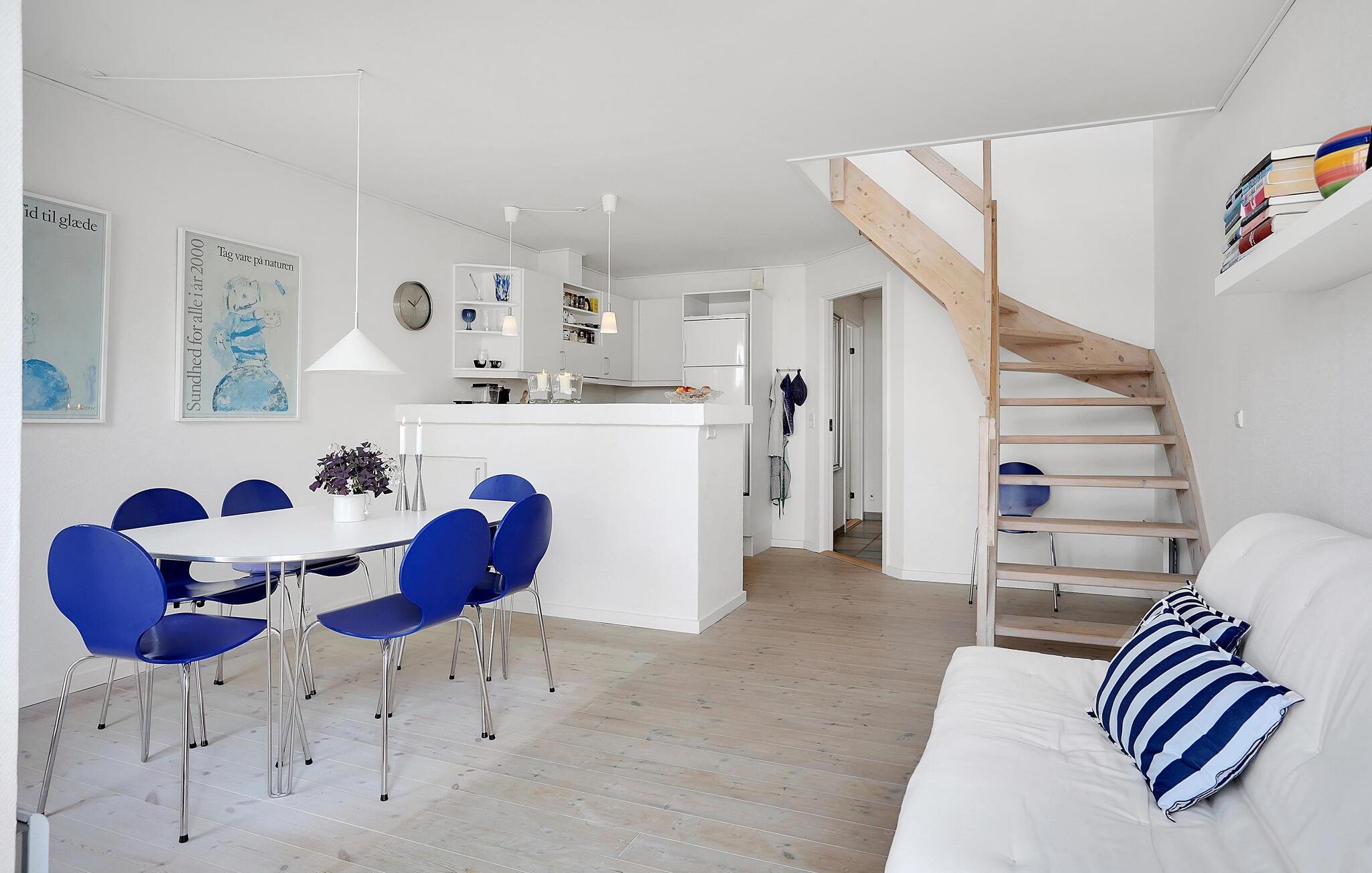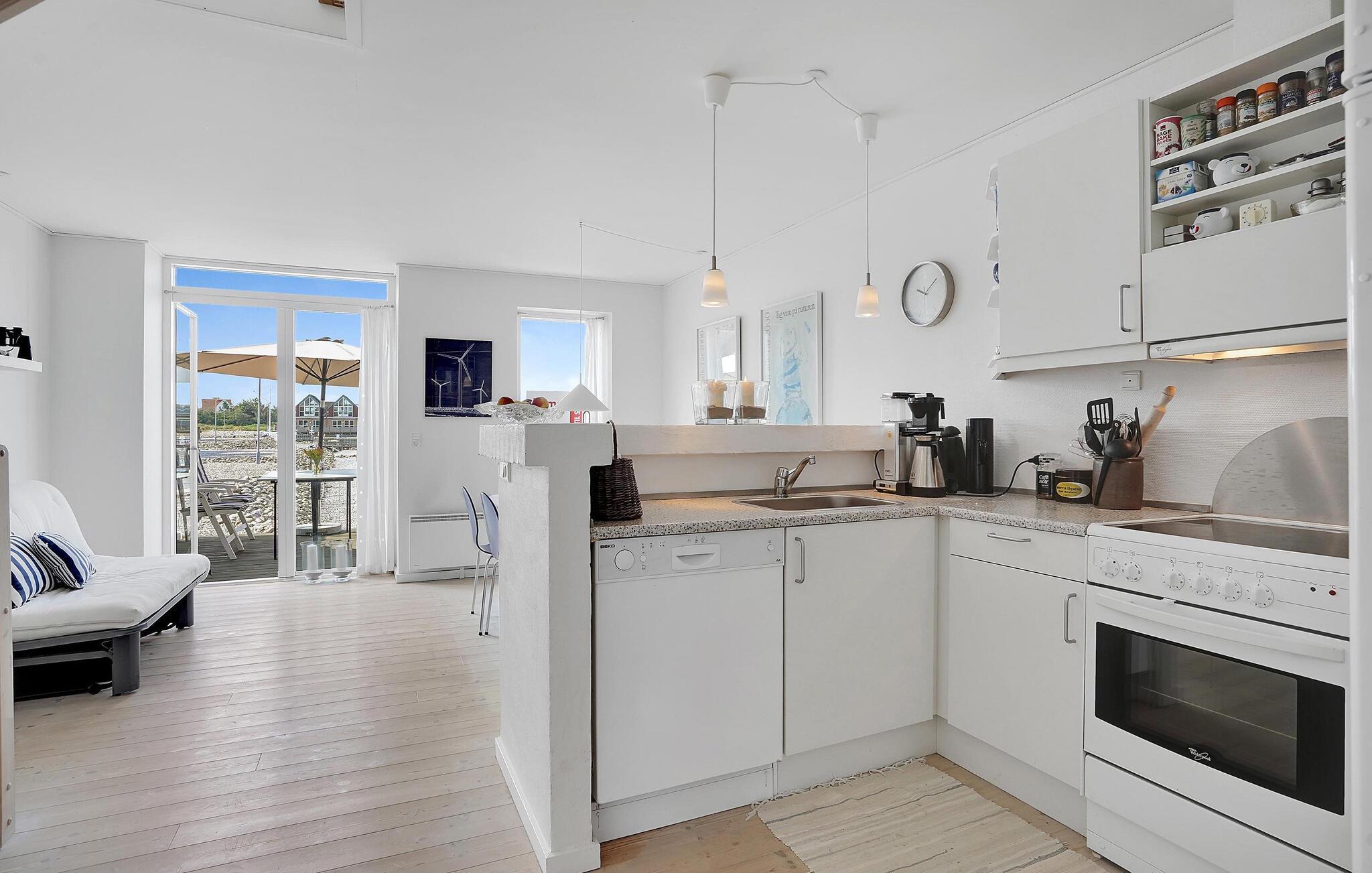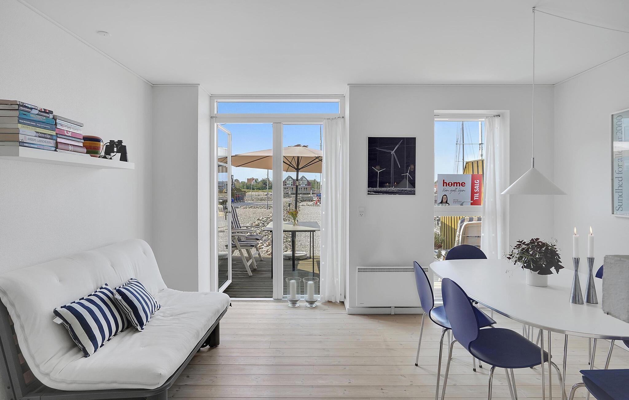 Oplev udendørsområdet og slap af på den vindbeskyttede terrasse. Nyd morgenmaden under den store parasol eller afslut dagen med et glas vin, mens I ser havnens travle liv. Den anden terrasse på bagsiden byder på endnu et behageligt opholdsområde.