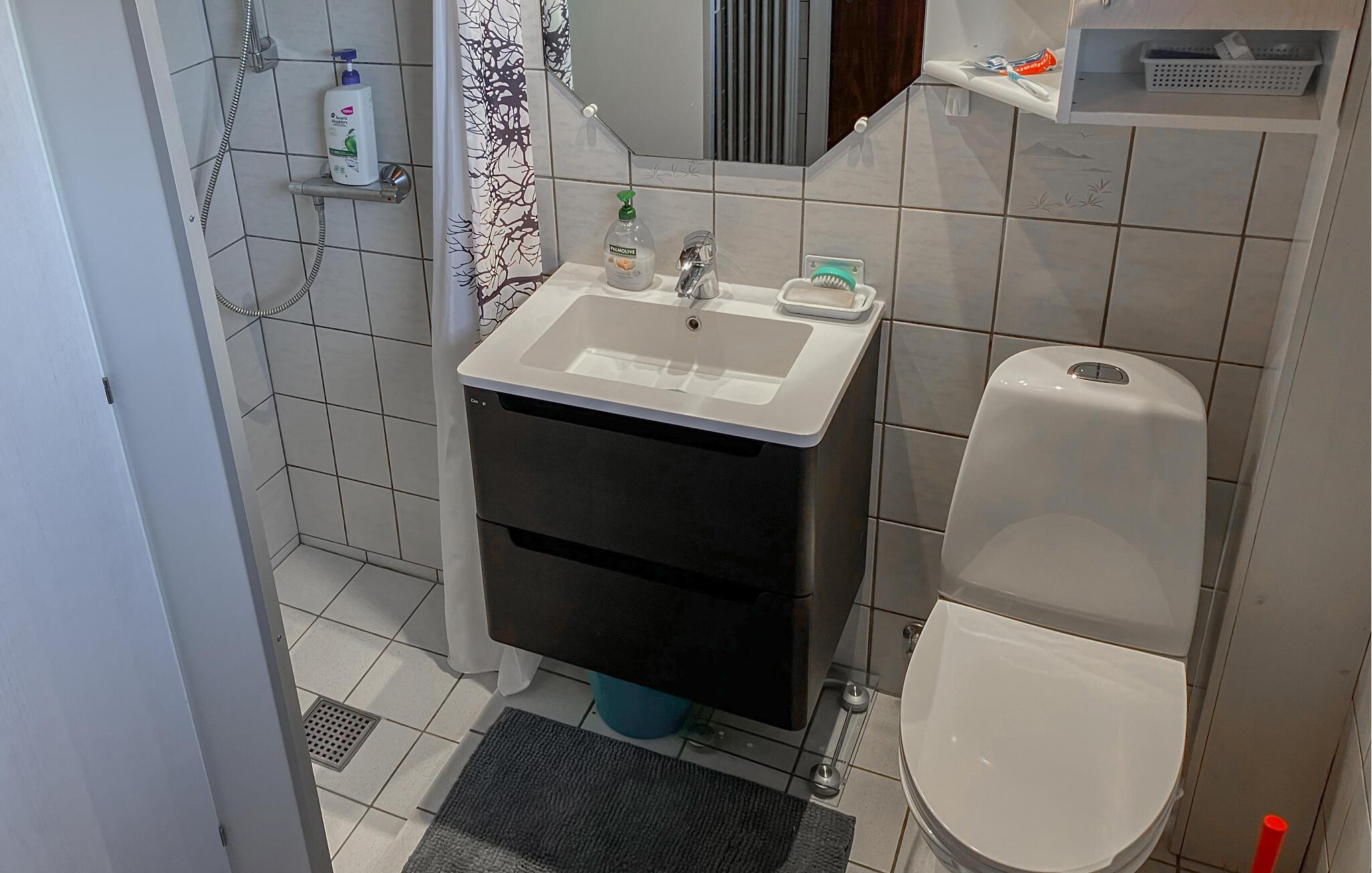 Badeværelse (nr. 1) - WC. Varmt og koldt vand. Bruser
