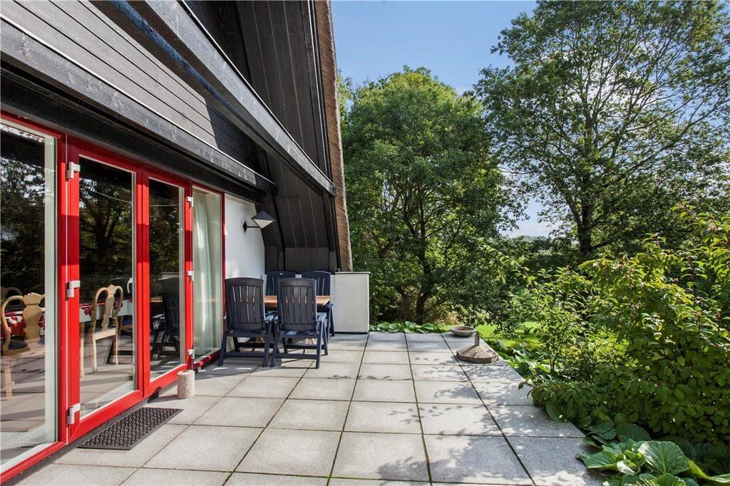 Sommerhus beliggende ugenert med udsigt over vandet. Huset er placeret på stor havegrund med græsplæne og to terrasser samt balkon fra førstesalen. Huset indeholder i stueplan en stue med åbent køkken, spiseplads og brændeovn, tre værelser og badeværelse. Fra stuen er der udgang til den ene af husets terrasser. Der er klinkegulv i hele stueetagen med gulvvarme. Fra stuen fører en trappe til førstesalen, som består af én stue med sofagruppe. Et hyggeligt rum, hvor loftet er op i kip med flot udsigt over vandet.