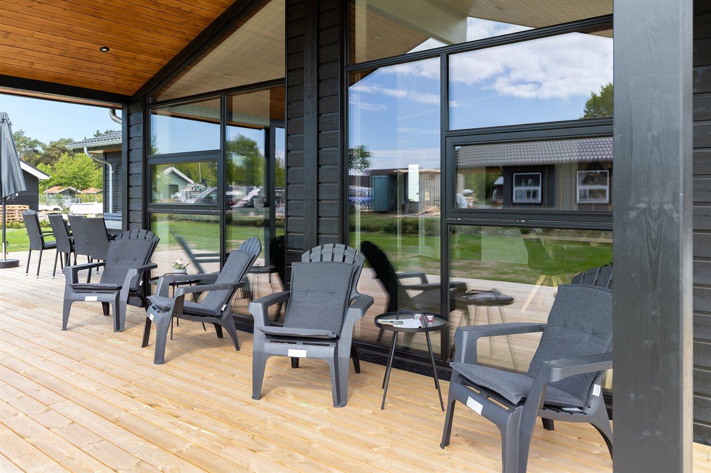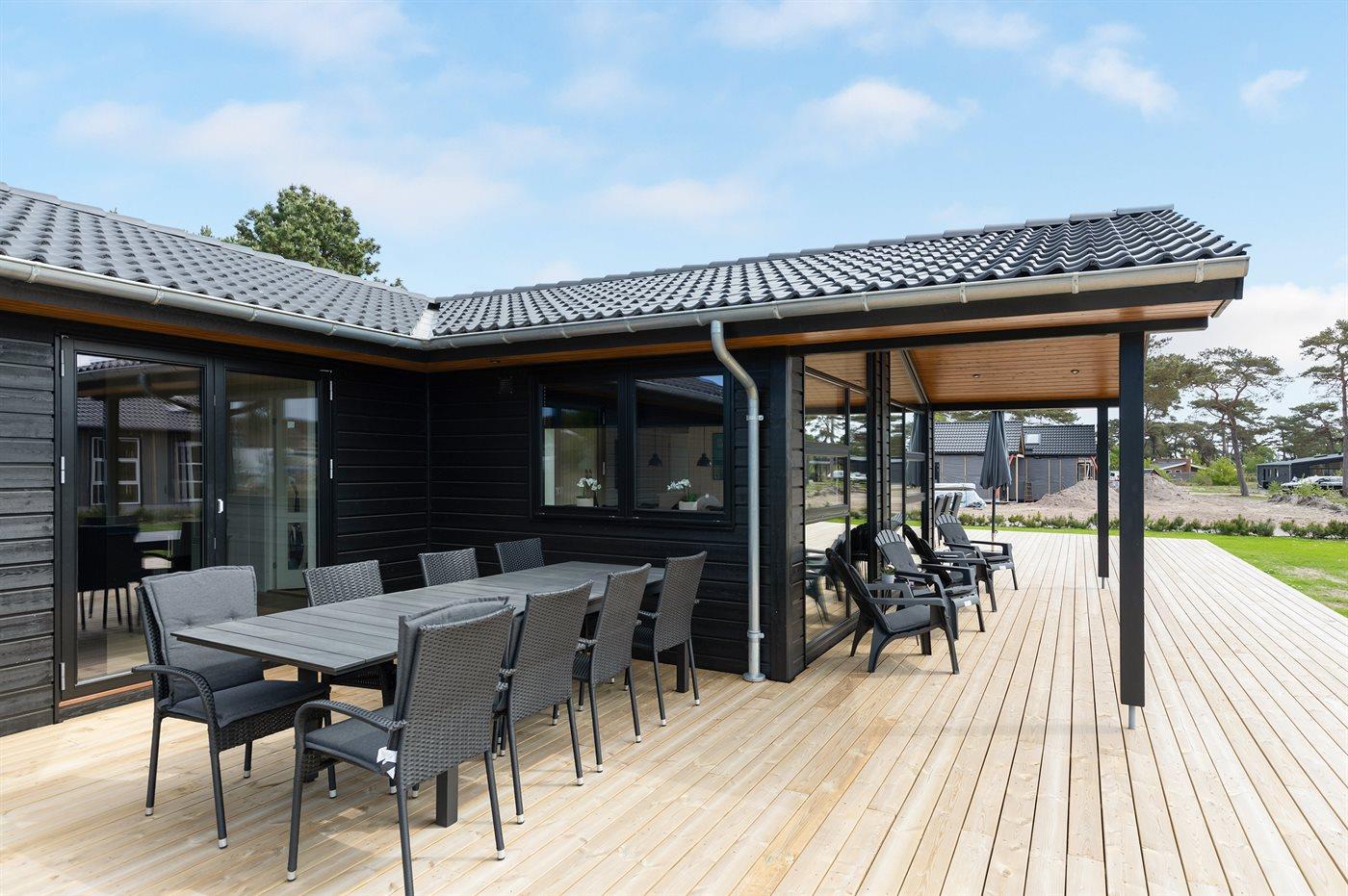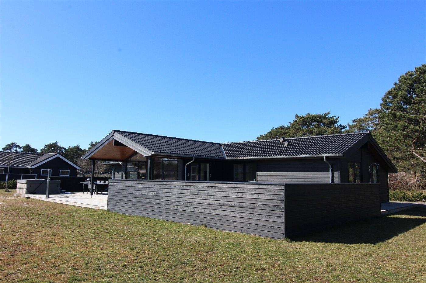 Ferieboligen er beliggende på en 1200 m² stor naturgrund. Der er 175 m til havet. Nærmeste forretning er beliggende i en afstand af 1500 m. Der er en golfbane i en afstand af 7000 m. Til ferieboligen hører 125 m² terrasseareal. Desuden er der 17 m² overdækket terrasse. Gynge. Udendørs bruser. Grill til rådighed. Der er installeret stik til opladning af elbil. Parkering ved ferieboligen.