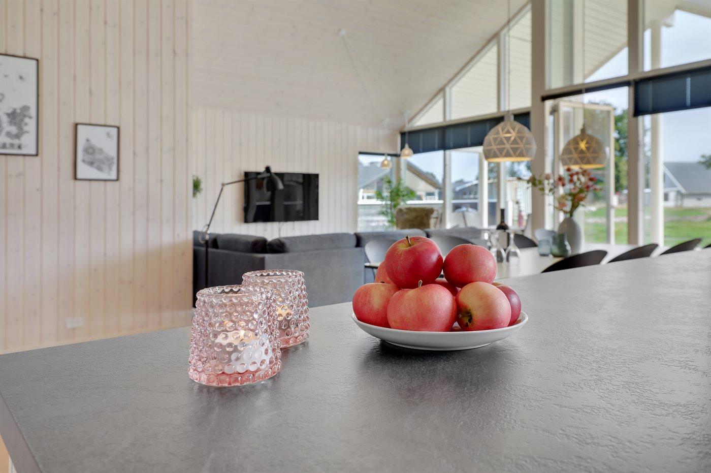 Køkkenet er udstyret med 1 køleskab. Der er 4 induktionskogeplader, varmluftovn, mikrobølgeovn samt opvaskemaskine.