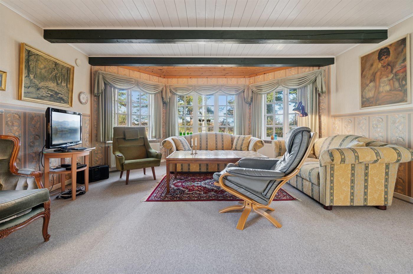 Huset er stort med flere stuer, flot køkkenafdeling og spa-badeværelse samt et større soveværelse med direkte udgang til lille morgenterrasse i stueplan. På 1. sal finder man foruden gæstetoilettet også to soveværelser, en hygge repos og altan, der er delvis overdækket og afskærmet.