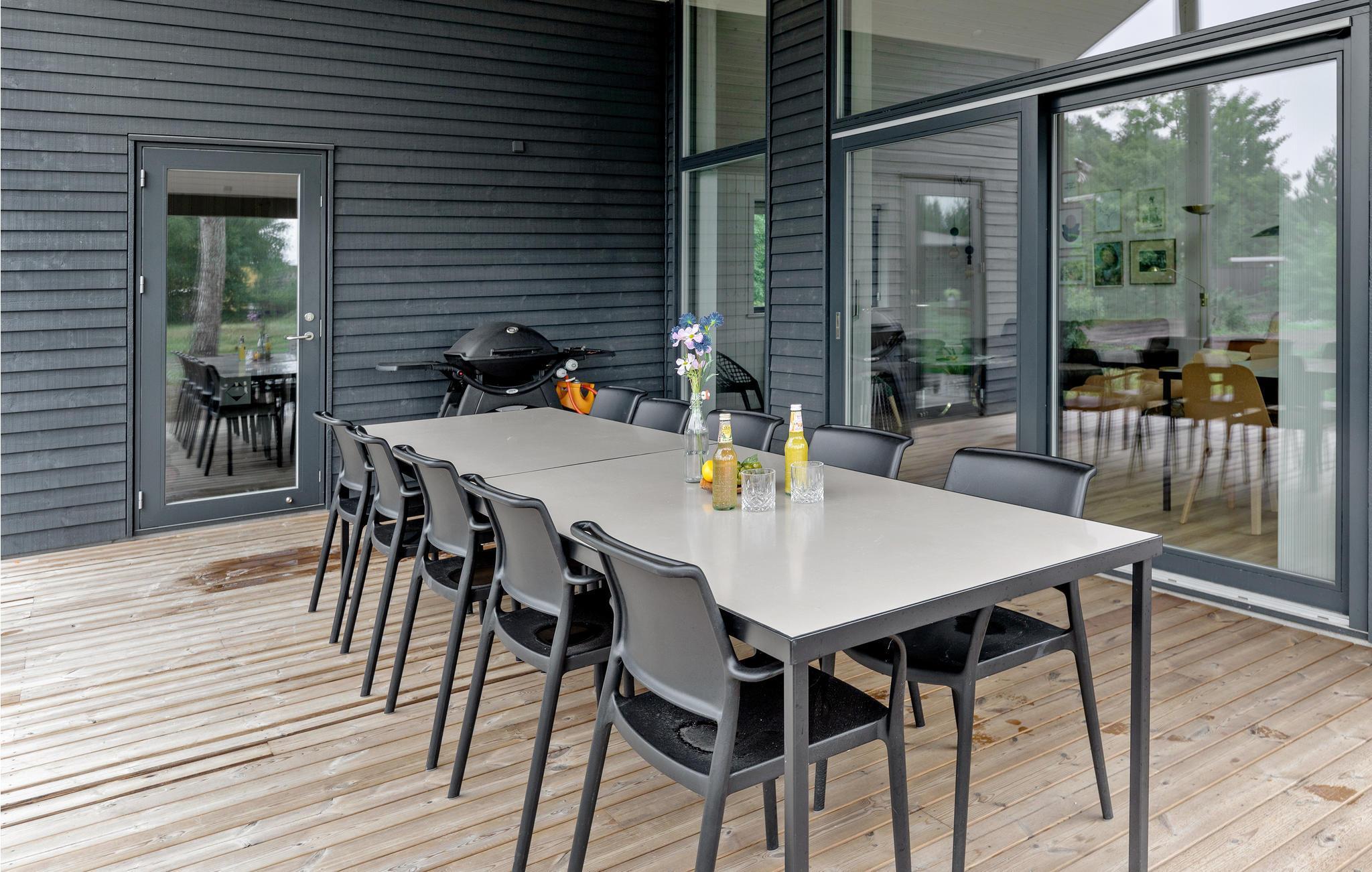 Lækkert træhus nær Balka Strand med stor terrasse, udespa og moderne faciliteter for en afslappende ferie.