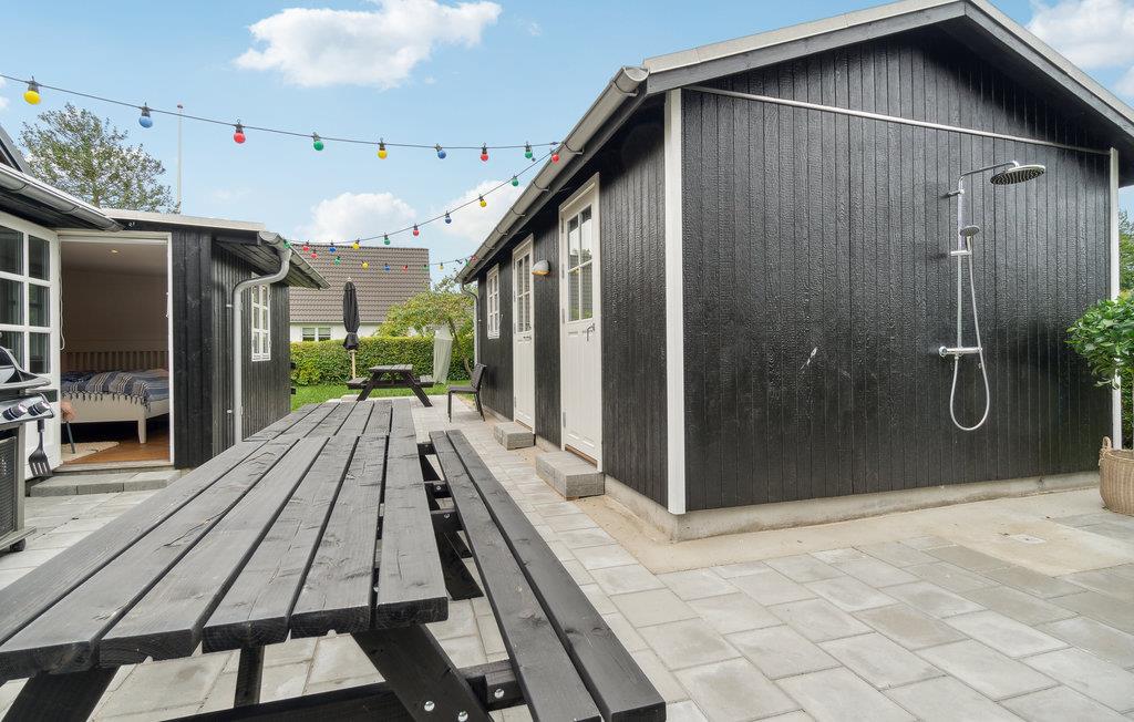 Charmerende feriehus tæt på Ballen Strand med smuk have og moderne faciliteter til en afslappende ferie.