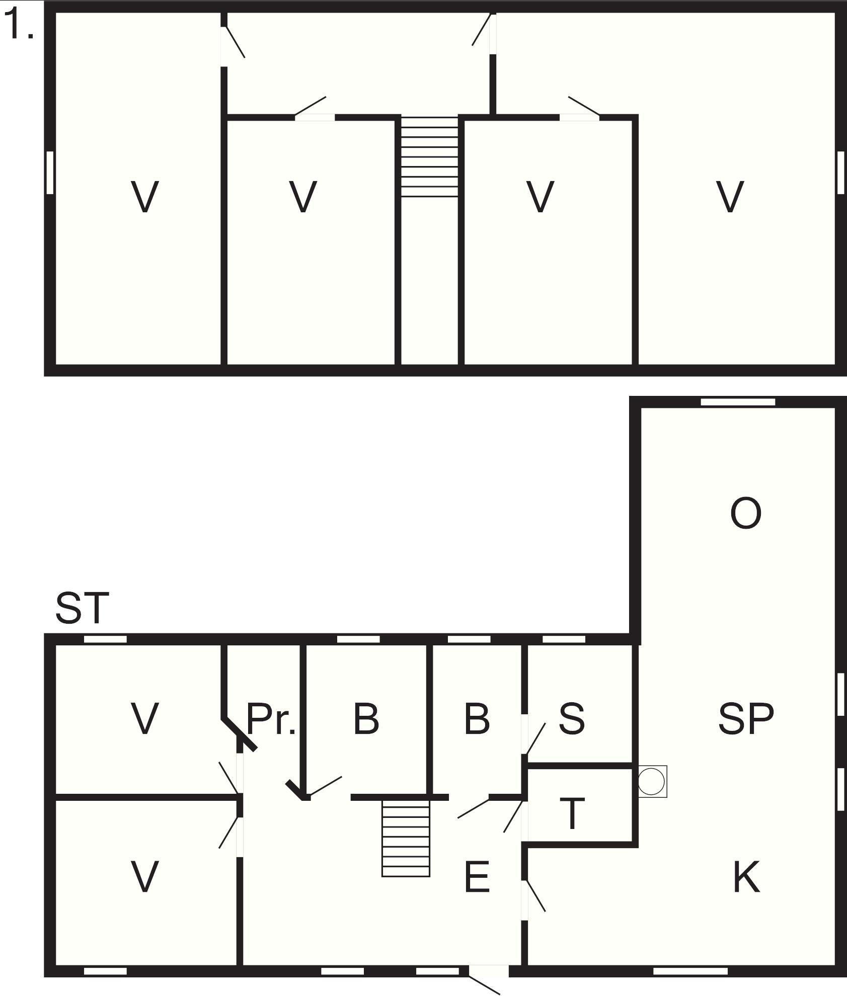 6 Soveværelser: (1DS)+(1DS)+(1DS)+(1DS)+(1DS)+(1DS), barneseng