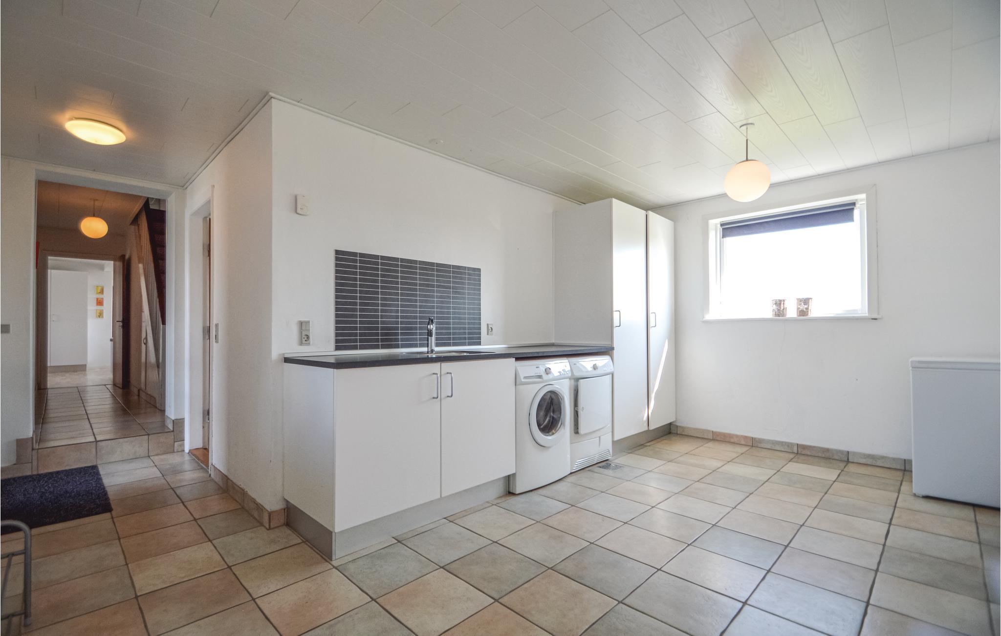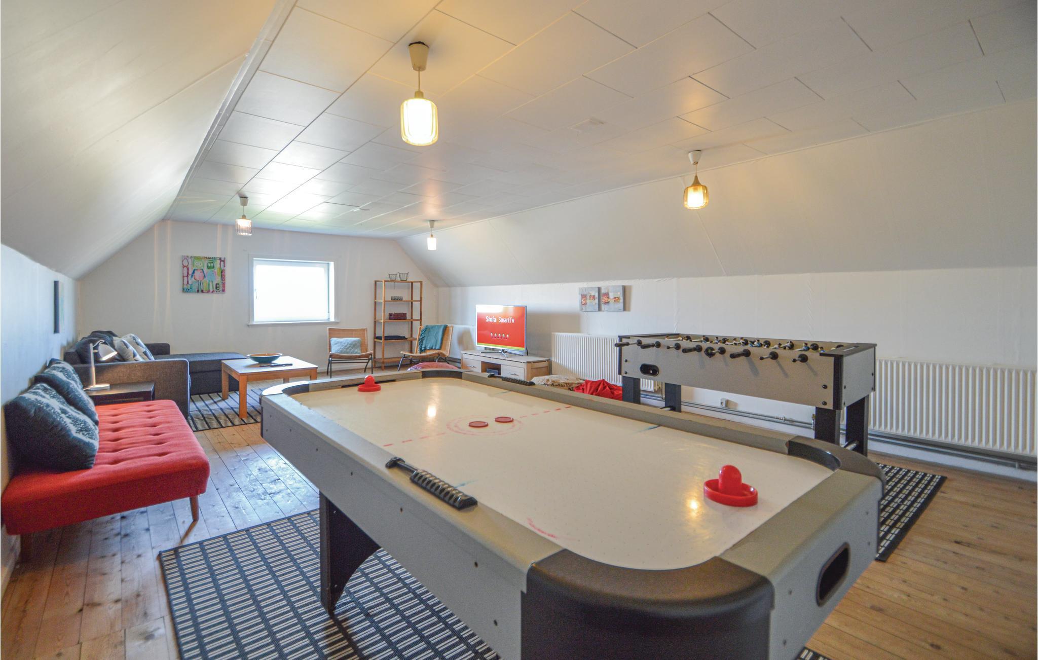 Huset er gennemrenoveret - alle rum i det store 2 etagers hus er holdt i lyse nuancer, så de fremstår indbydende og funktionelle. Det store rum på 1. sal er indrettet som et opholds- og aktivitetsrum med bl.a tv. I stueetagen med det store køkken/alrum fører en terrassedør direkte ud på den indhegnede terrasse. Her er der havudsigt til Vadehavet og med jævne mellemrum ses Rømø - Sild færgen. Fra terrassen har I også et godt overblik over til legehjørnet, med rutsjebane og trampolin. Øst for huset ligger kystvejen - vejen gennem Marsklandskabet.