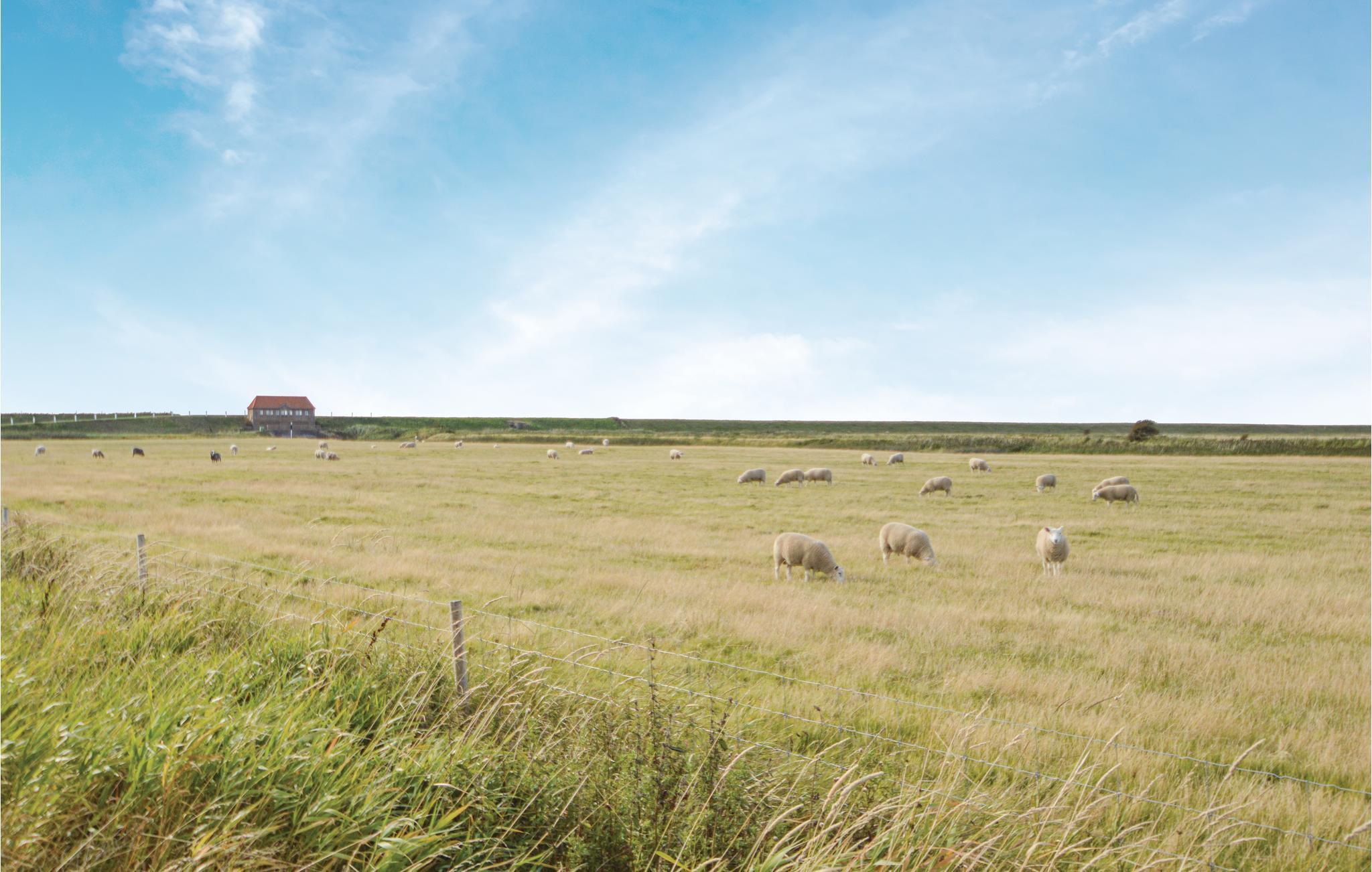 Gennemrenoveret fritidshus med panoramaudsigt til Vadehavet og indhegnet terrasse nær Marsklandskabet.