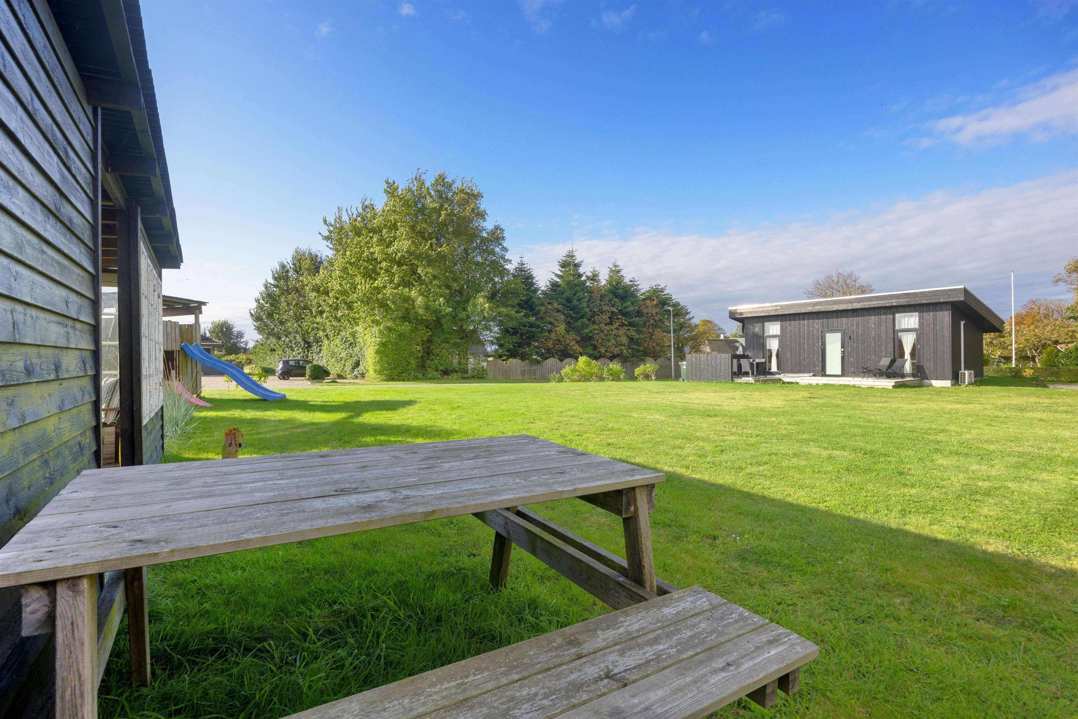 Udenfor kan I slappe af på den afskærmede terrasse med havemøbler og liggestole. Det perfekte sted til at nyde morgenkaffen eller et godt glas vin, mens solen går ned ude i horisonten. Imens I slapper af på terrassen, kan hunden løbe rundt og lege på den skønne naturgrund. I har også en grill til rådighed, så I kan tilberede en lækker grillmiddag under åben himmel.
