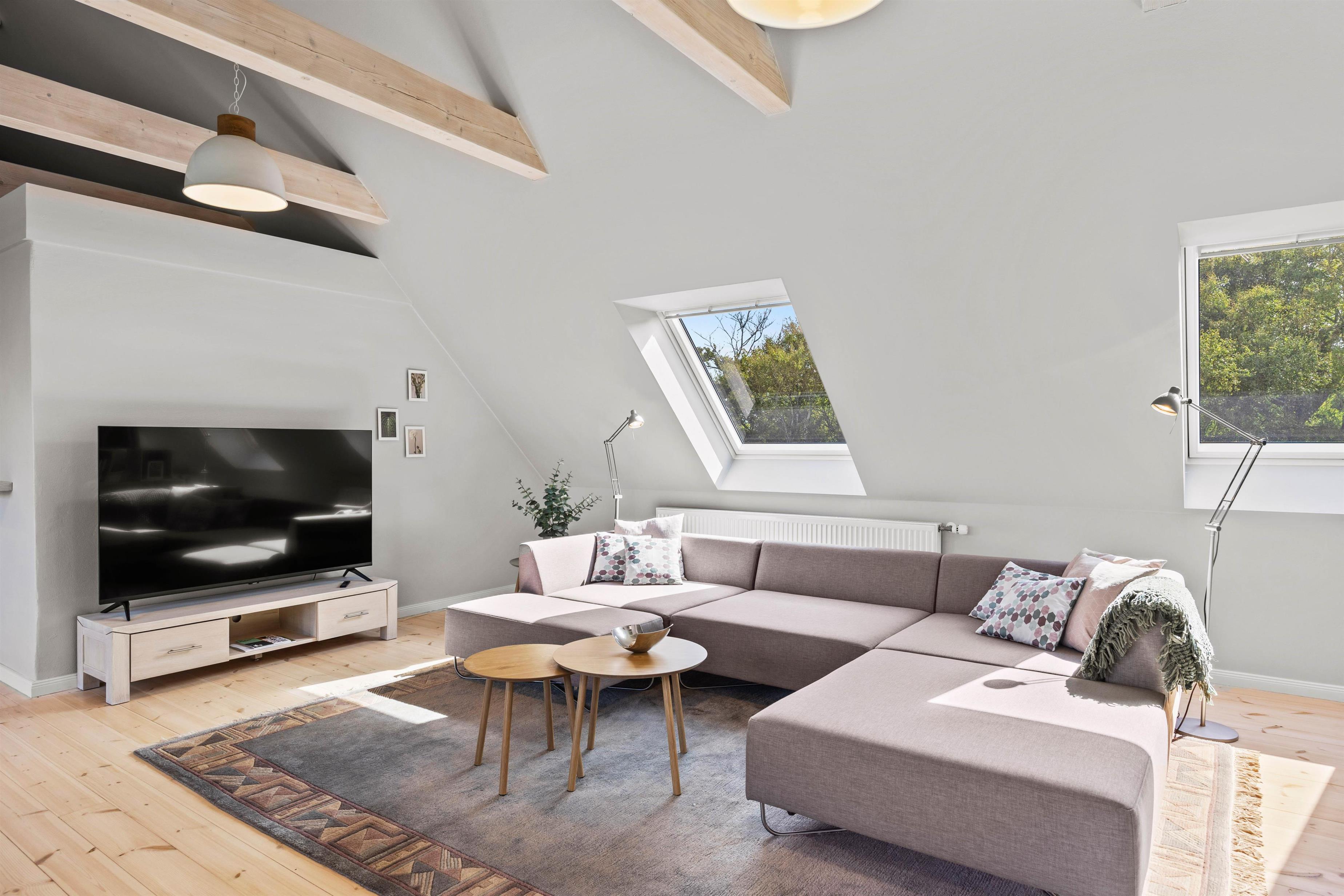 Køkkenet er fuldt udstyret med opvaskemaskine, køleskab med integreret frostboks og induktionskomfur med ovn, så I nemt kan tilberede lækre måltider, som I kan nyde i den rolige atmosfære. Badeværelset fremstår moderne og velholdt med naturligt lysindfald, og den hyggelige indretning med trægulve i ophold og soveværelser skaber en varm og indbydende stemning.