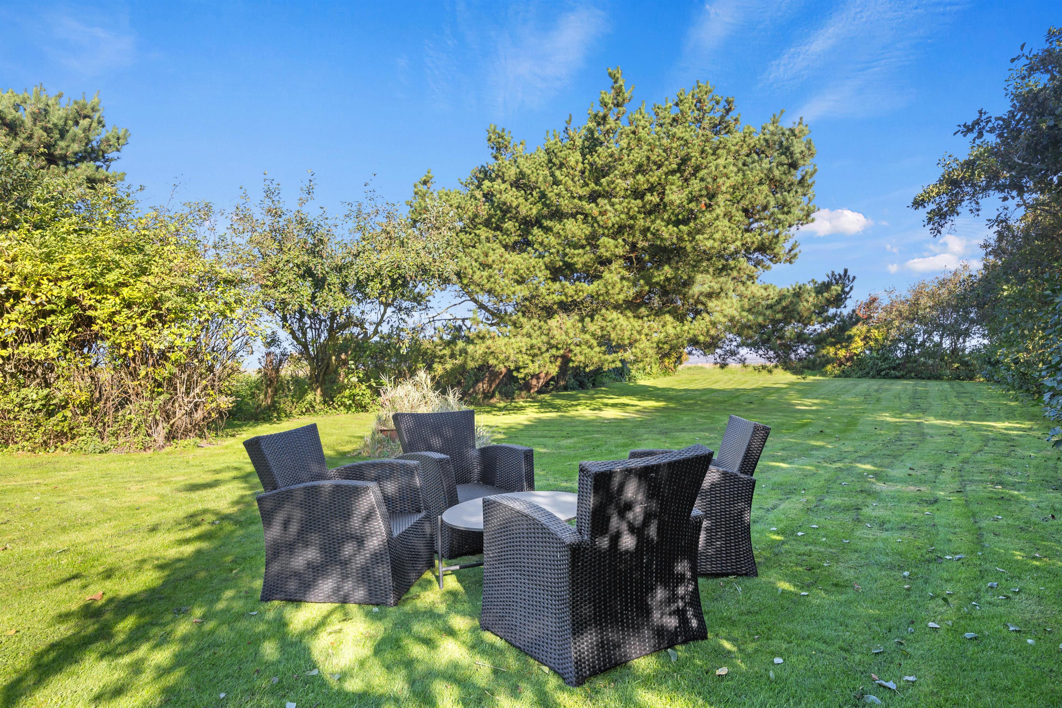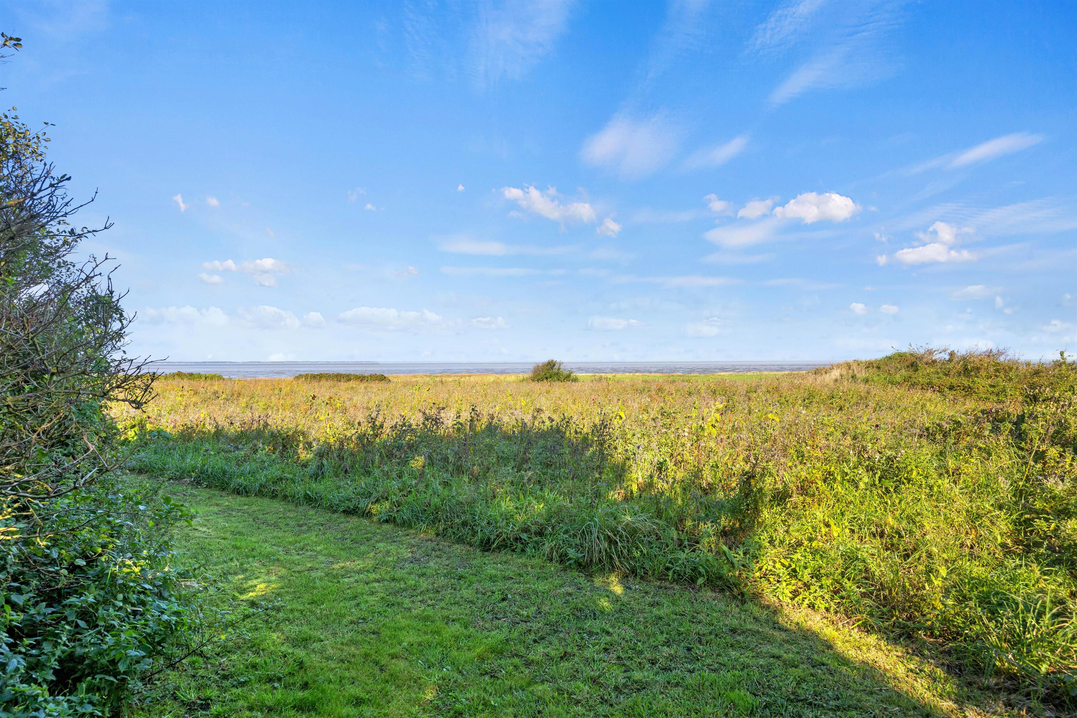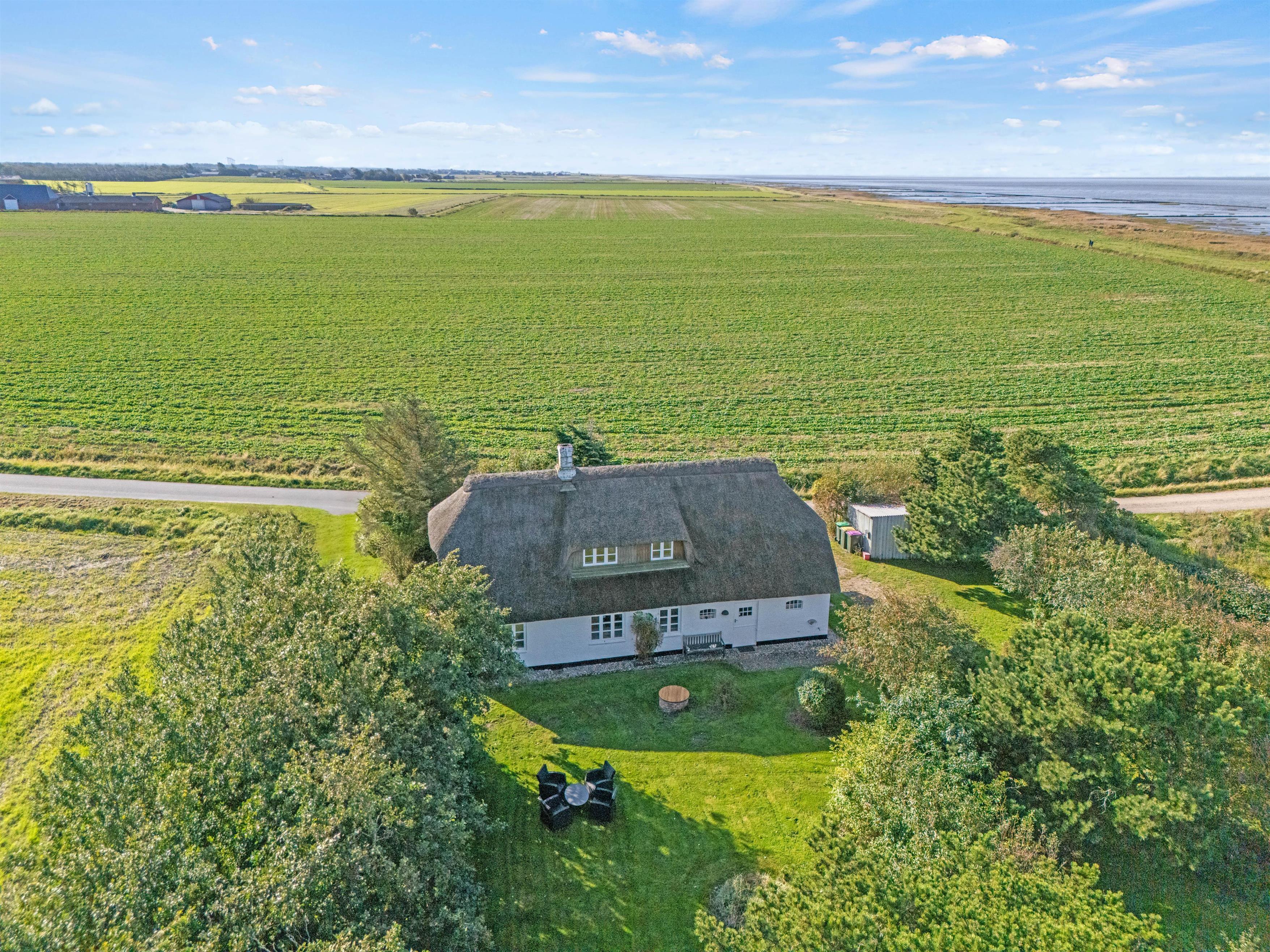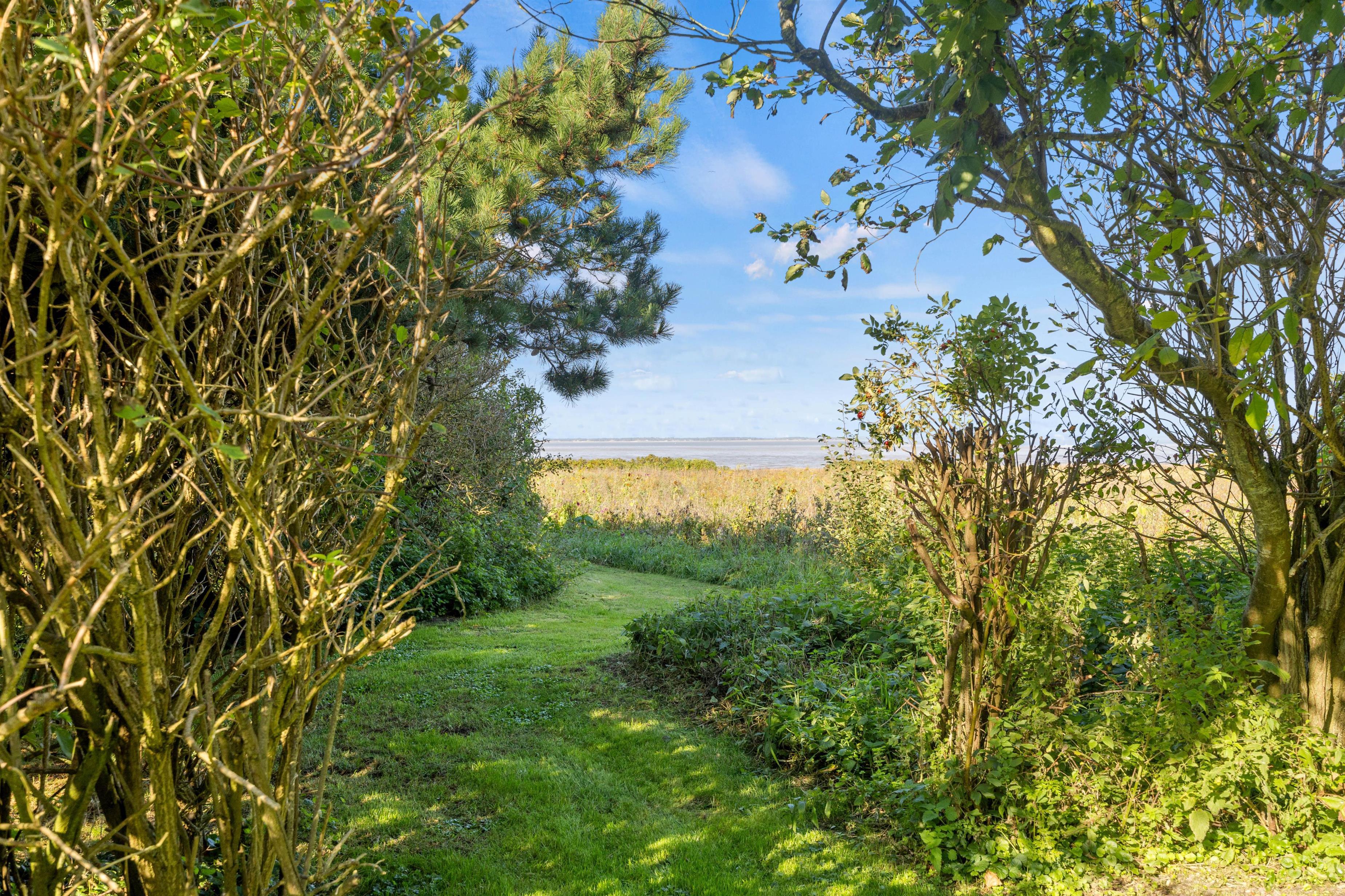 Feriehuset ligger på en fin grund med en stor græsplæne. På terrassen er der liggestole, havemøbler og grill, og mens du nyder freden og roen på terrassen, kan de små lege på græsplænen. Fra haven har I også udsigt til Vadehavet, som blot ligger 100 meter herfra.