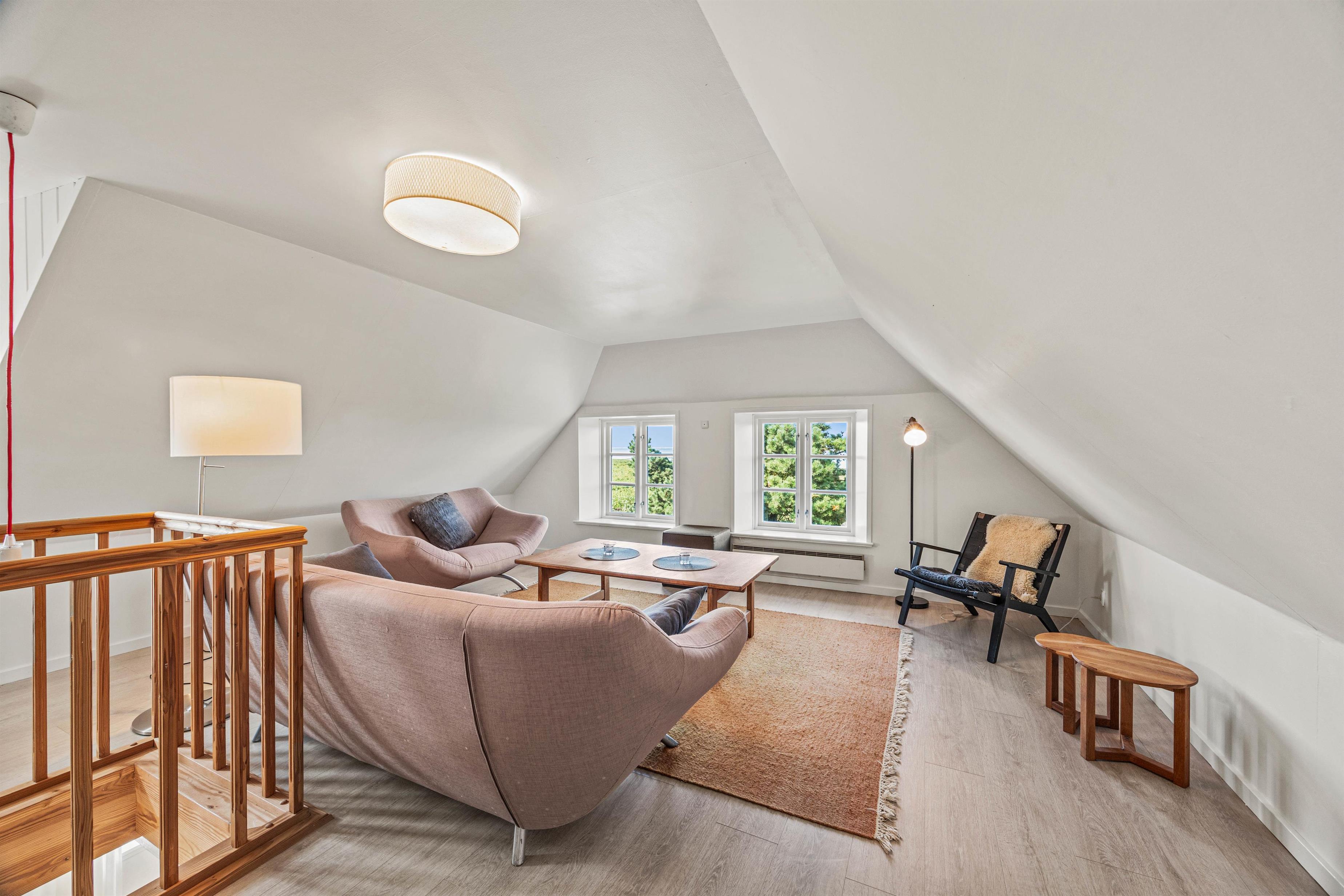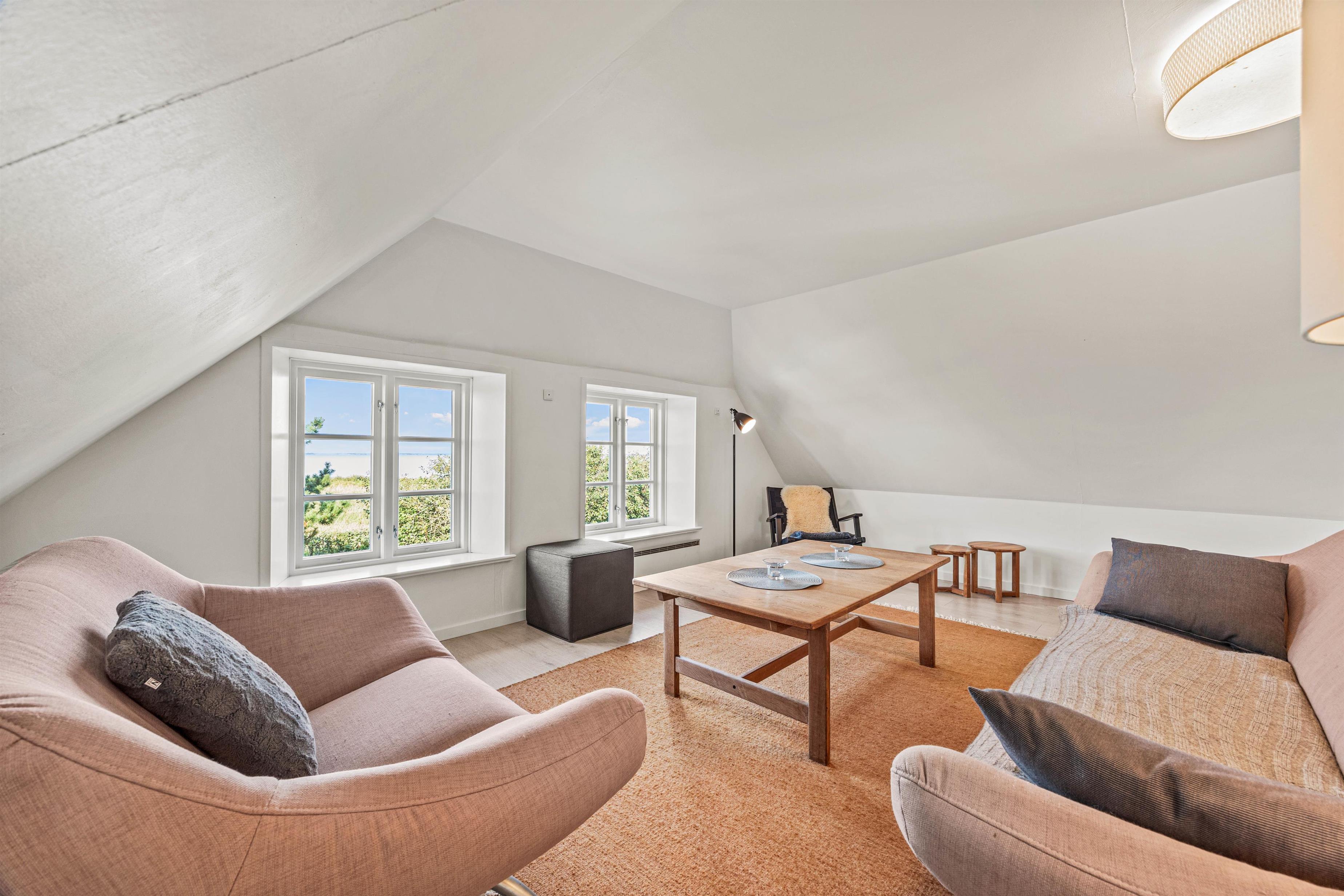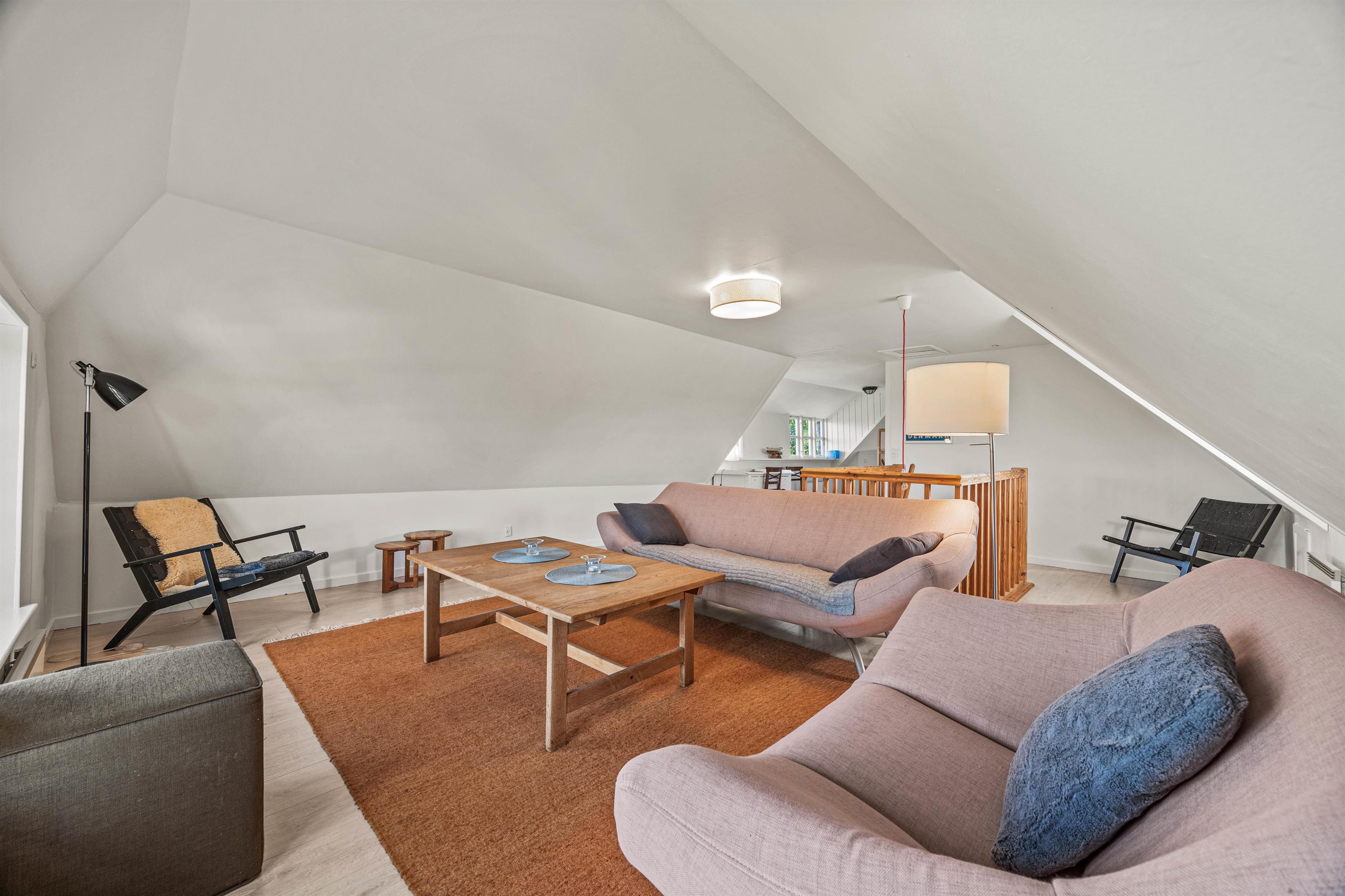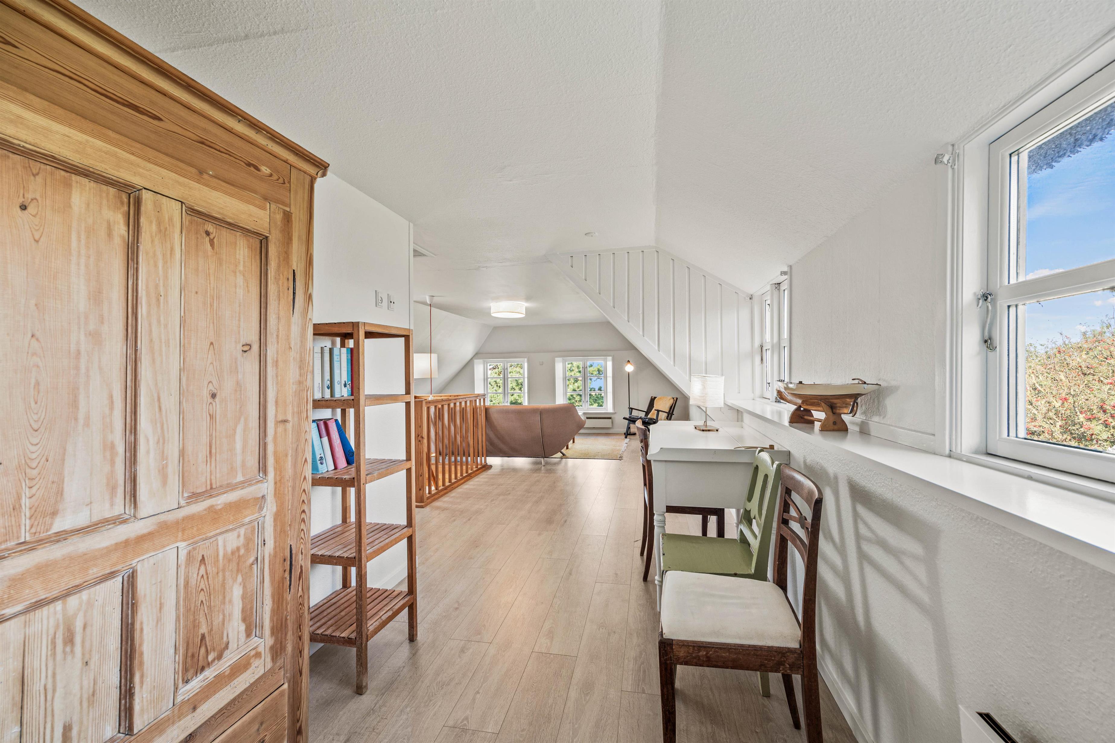 På 1. salen finder I endnu en stue med fantastisk udsigt til vandet samt 2 af sommerhusets i alt 3 soveværelser. Der er 2 værelser med dobbeltseng, mens det sidste værelse er indrettet med 2 enkeltsenge.