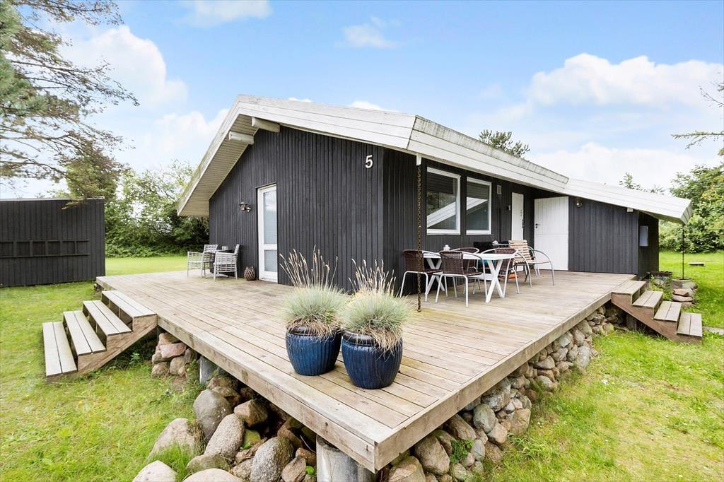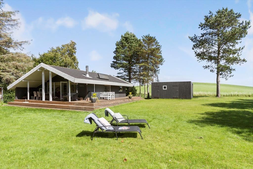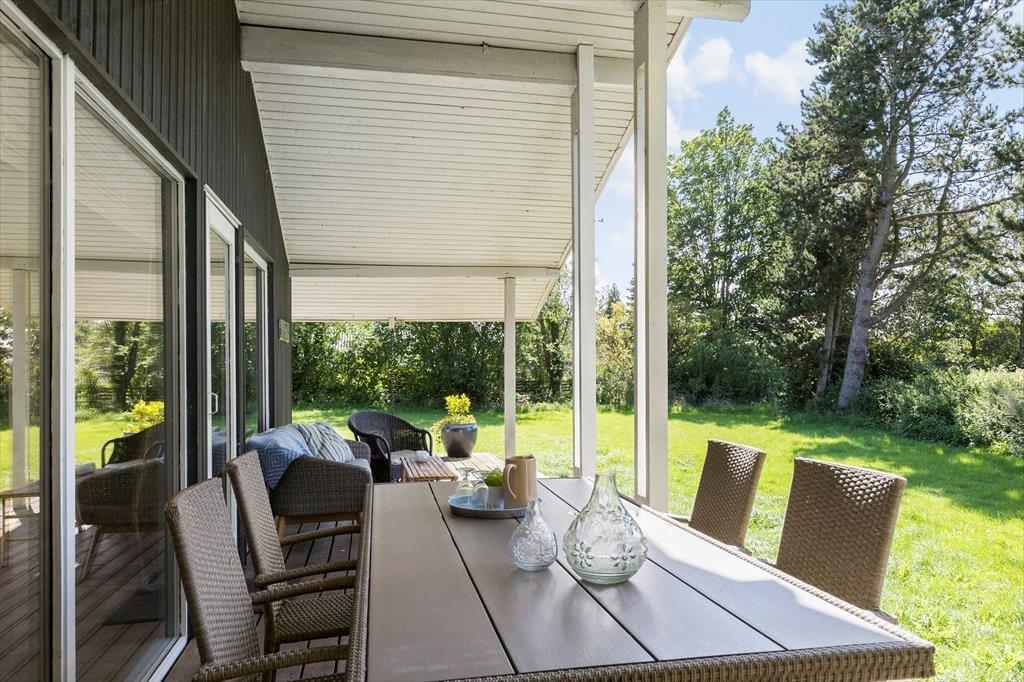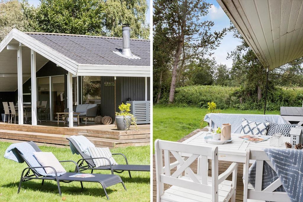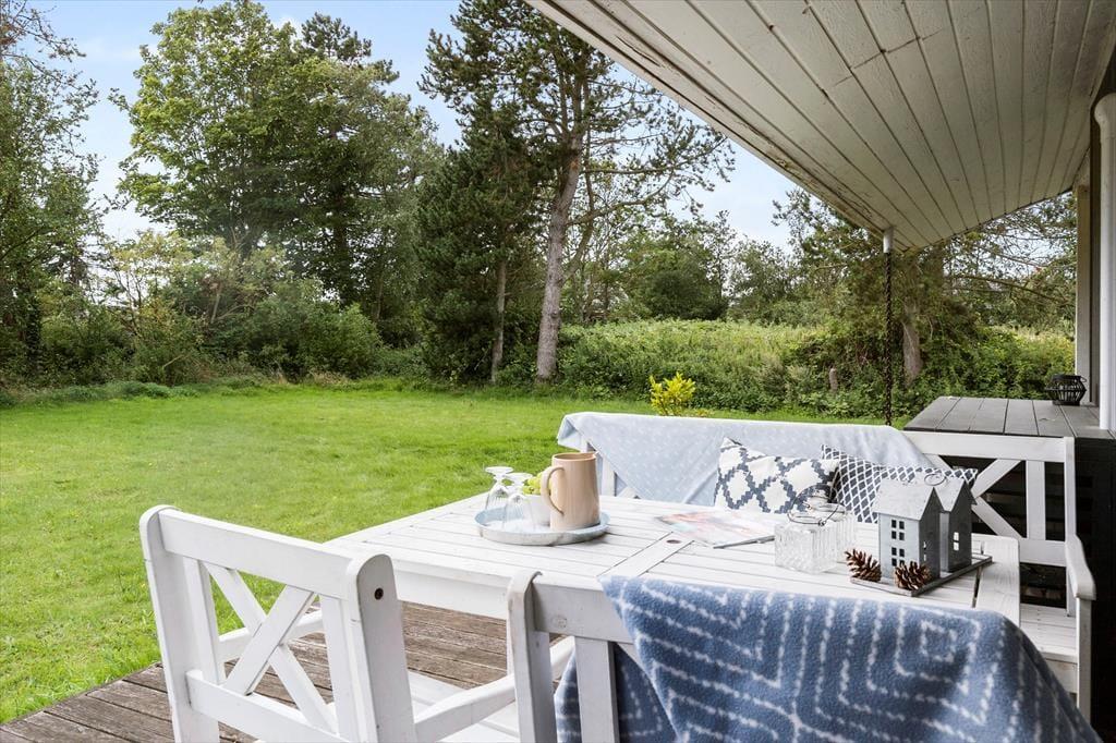 Udenfor kan du nyde solen på den store terrasse, hvor grillen står klar til sommerens måltider under åben himmel. Haven er ideel til afslapning og leg, med god plads til at børnene kan boltre sig, mens de voksne finder ro og fordybelse i de omkringliggende naturskønne omgivelser. Er vejret til det, kan du også tage en tur til stranden, som kun ligger en kort køretur væk. Her får du alt, hvad der skal til for at lade feriefreden sænke sig.