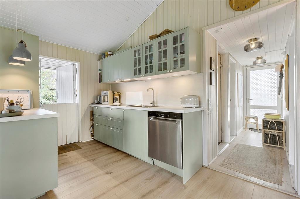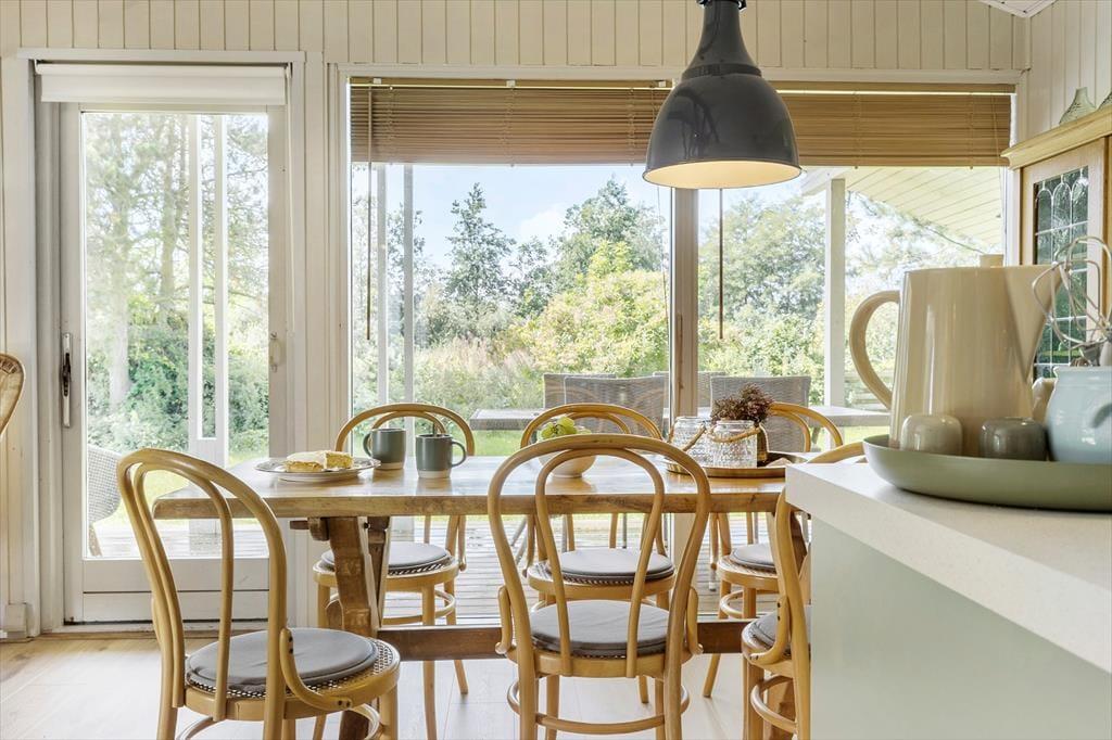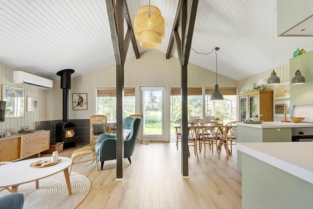 Træd indenfor i dette hyggelige feriehus, hvor afslapning og nærvær venter på jer! Her møder du en dejlig åben opholdsstue, som indbyder til hyggelige aftener i sofaen og fælles måltider ved det store spisebord. Køkkenet er lyst og funktionelt, og her er alt, hvad du skal bruge for at tilberede lækre feriemåltider. Feriehuset er skabt til at samle familien og skabe gode minder – og har selvfølgelig plads til, at både store og små kan finde sig til rette.