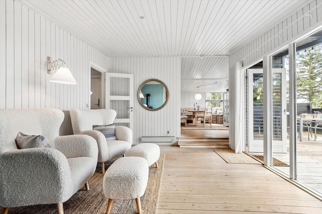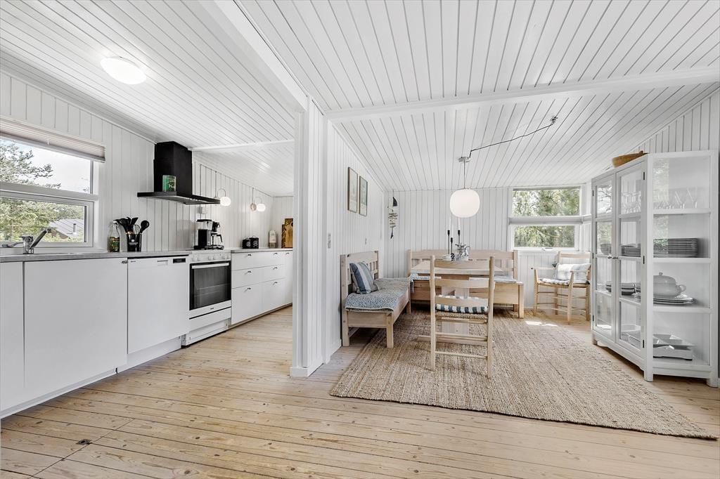 Du kommer her til et af de sjældnere strandhuse som ligger 150 meter fra havet. Huset har 2 værelser, køkken i åben forbindelse med stuen, samt naturligvis et dejligt badeværelse med gulvvarme. I stuen er der også fuld udsigt, så selv hvis vejret ikke er optimalt, kan du sidde indenfor og spille et spil samtidig med at udsigten nydes. Her er alt det der skal til for at holde en dejligt, rolig og afslappende ferie, det er bare med at komme afsted.