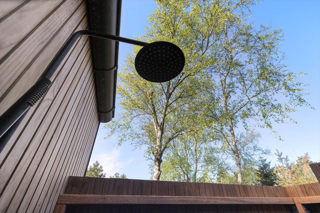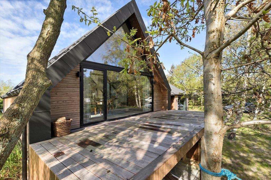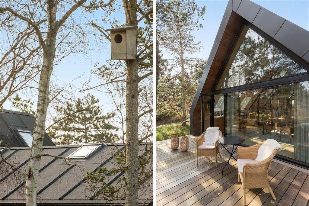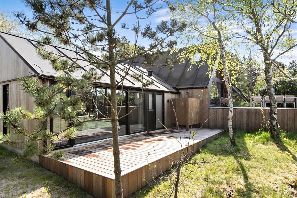 Med flere skønne terrasser omkring huset er der rig mulighed for at nyde udelivet. På den ene terrasse kan du slappe af med udsigt til skoven, mens den anden indbyder til hyggelige måltider og lange sommeraftener. Naturgrunden giver plads til fordybelse og afslapning. Blot 2 minutters gang har du næsten hele stranden for dig selv med den smukke udsigt over Vigen og mulighed for en dukkert, gåtur, leg, eller bare afslapning.