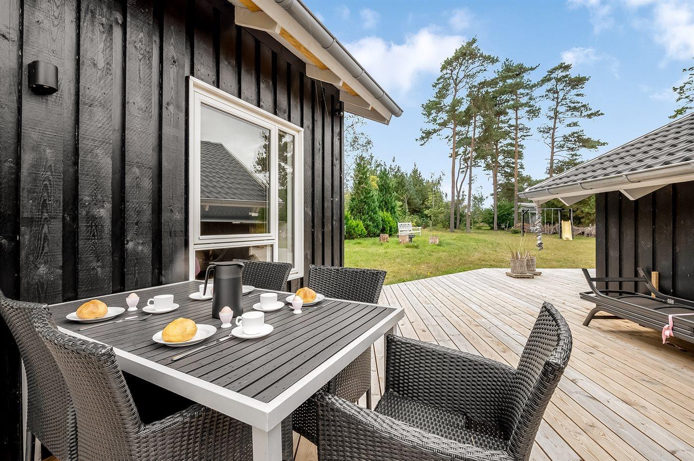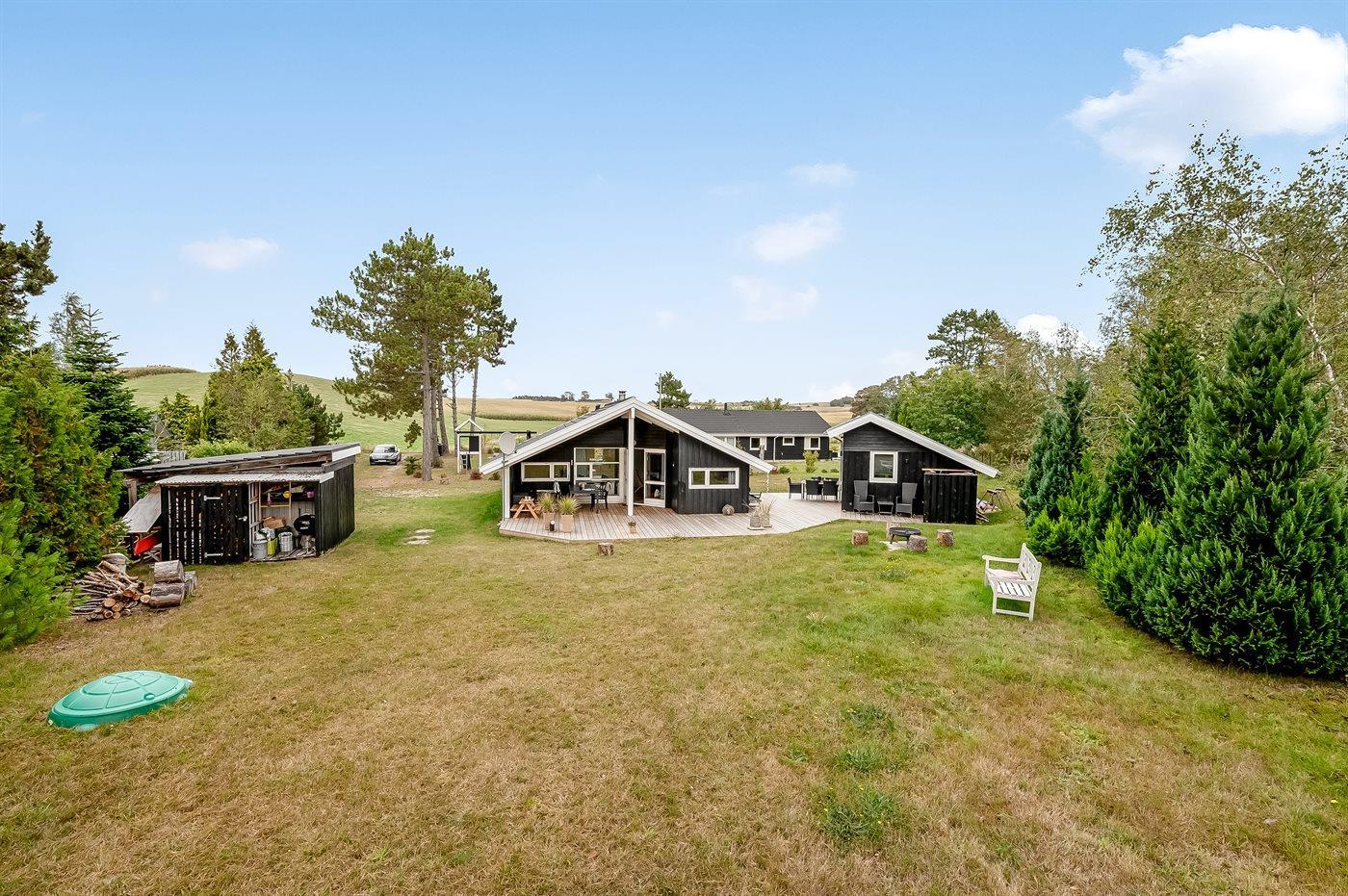 Ferieboligen er beliggende på en 1390 m² stor naturgrund. Der er 175 m til havet. Nærmeste forretning er beliggende i en afstand af 4000 m. Til ferieboligen hører 7 m² terrasseareal. Desuden er der 18 m² overdækket terrasse. Gynge. Der er installeret stik til opladning af elbil. Parkering ved ferieboligen.