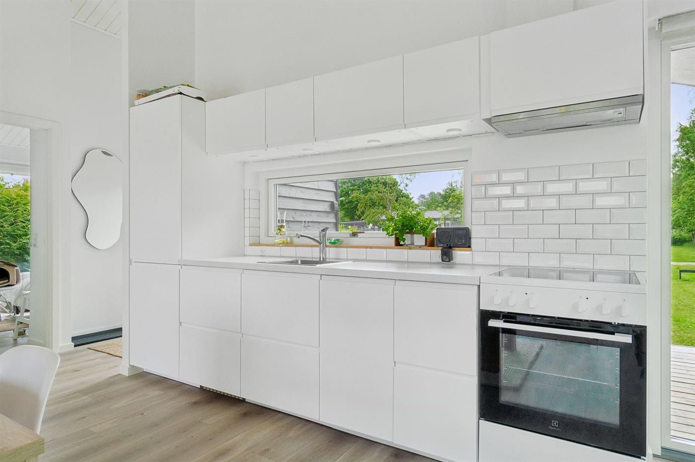 Køkkenet er udstyret med 1 køleskab. Der er 4 keramiske kogeplader, varmluftovn samt opvaskemaskine.