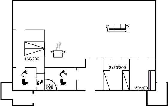 Sommerhuset egner sig til 6 personer. Ferieboligen er på 95 m² og er bygget i 2010. Det er ikke tilladt at medbringe husdyr. Ferieboligen er udstyret med energibesparende luft til luft varmepumpe. Hele ferieboligen har gulvvarme. Ferieboligen har vaskemaskine. Tørretumbler. Frysekapacitet på 85 liter. Der er desuden brændeovn.