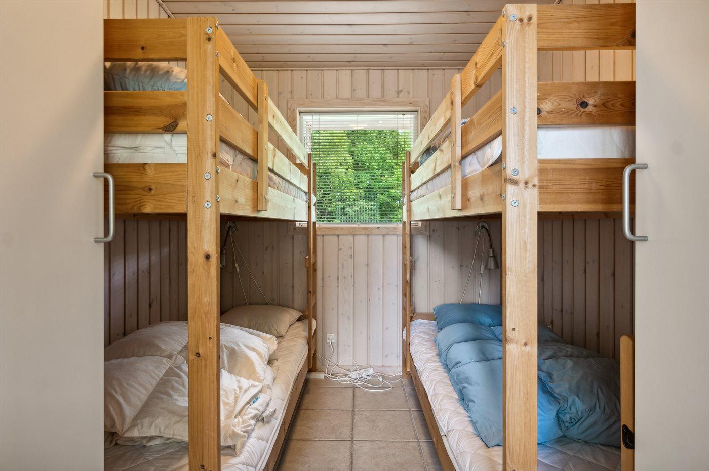 Der er i alt 3 soveværelser. Sovepladserne fordeler sig på: 2 sovepladser i dobbeltseng. 2 sovepladser i enkeltsenge. 2 sovepladser i køjeseng.