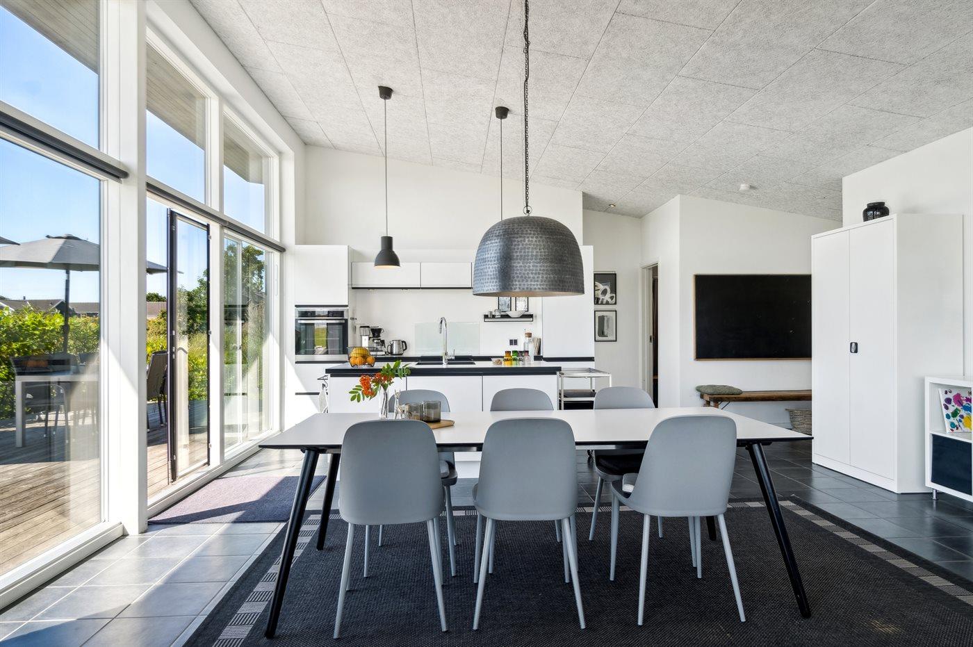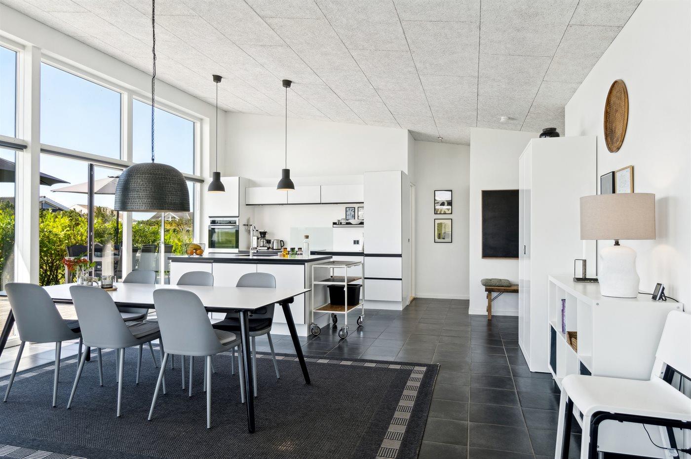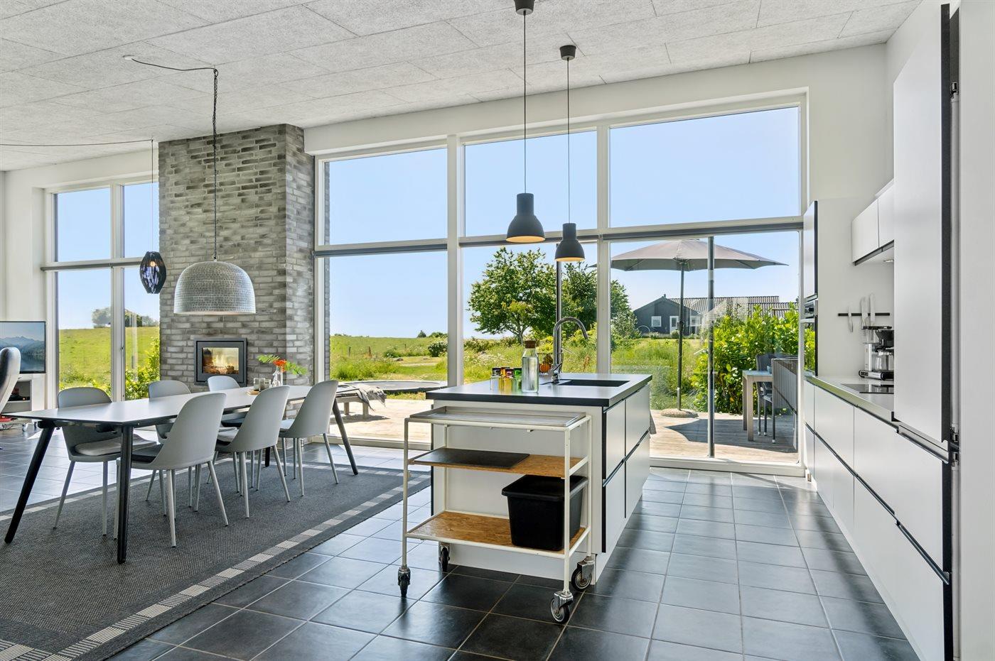 Sommerhuset hjerte, foruden de skønne udendørs arealer, er det store og åbne køkken/alrum som er kombineret med stuen. Her kan hele familien samles og via de store vinduer er der en skøn udsigt til den smukke og fredfyldte have.