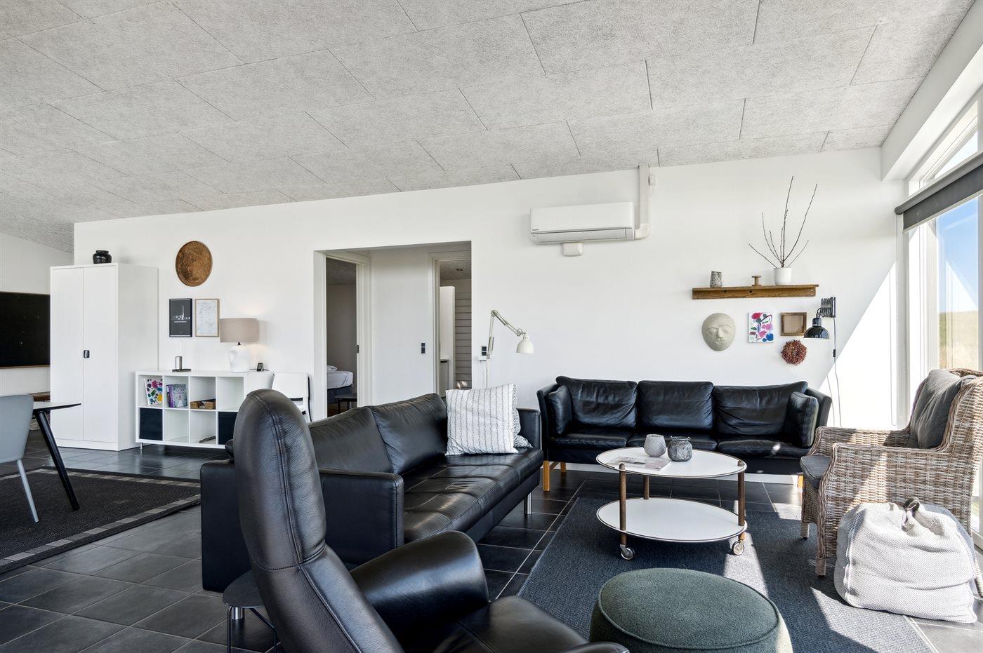 Sommerhuset er virkelig gennemført, med en rigtig god og rummelig planløsning, hvor der er masser af plads. Af denne grund passer huset rigtig godt til f.eks. to familier, som ønsker at holde ferie sammen. Der findes 8 gode sovepladser og mulighederne er mange i dette fantastiske sommerhus. Det er også muligt at medbringe familiens firbenede ven.